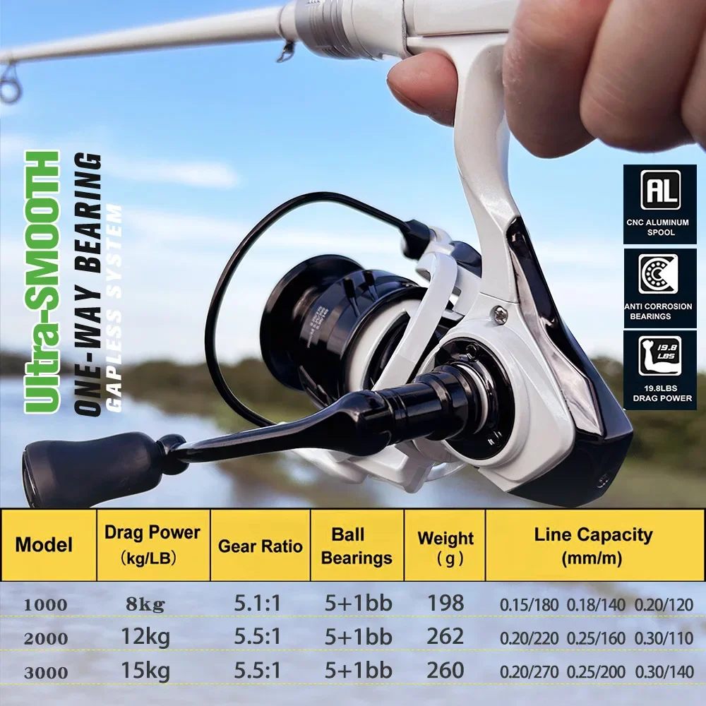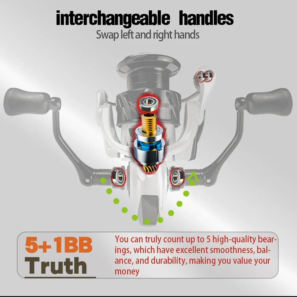 La configuración también es excelente, con rodamientos reales de 5 + 1BB, 4 rodamientos de doble cierre de acero inoxidable y 2 rodamientos de acero al carbono, lo que hace que las ruedas giren de manera muy suave y silenciosa