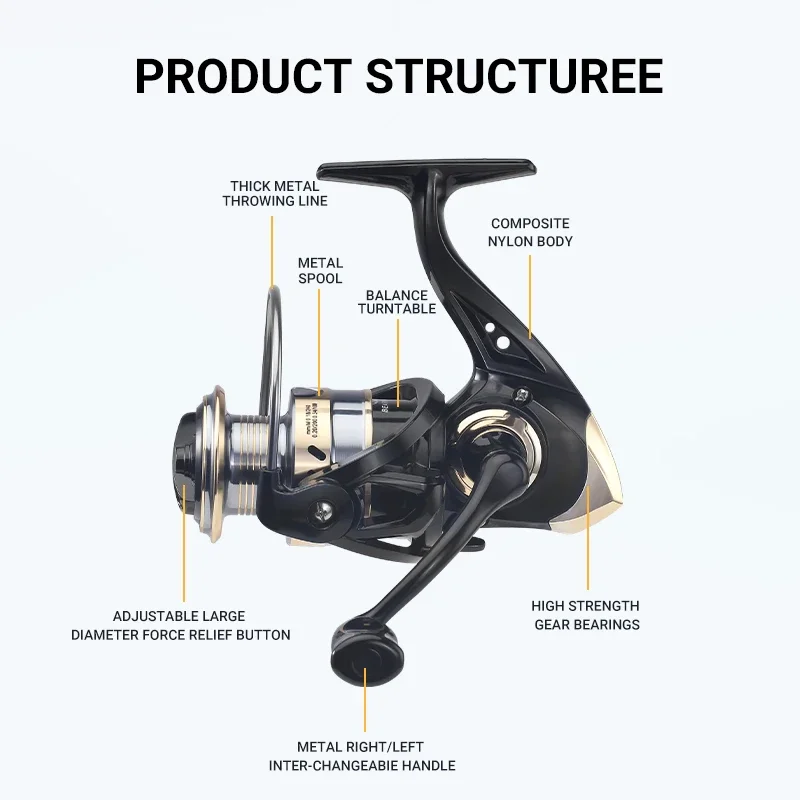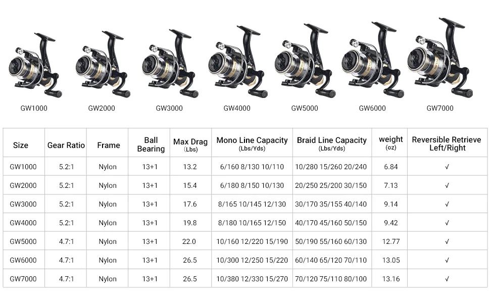Carrete de pesca giratorio GoldWing 500-7000, carrete de Metal 5,2: 1 4,7:1, relación de engranaje 13-26,5 libras, arrastre máximo para agua dulce y salada