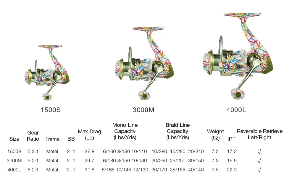 Carrete de pesca giratorio HAUT TON GRAFFITI 1500S/3000M/4000L 5,2: 1 relación de engranaje 3 + 1BB 27,8-31,8 libras arrastre máximo para agua salada de agua dulce