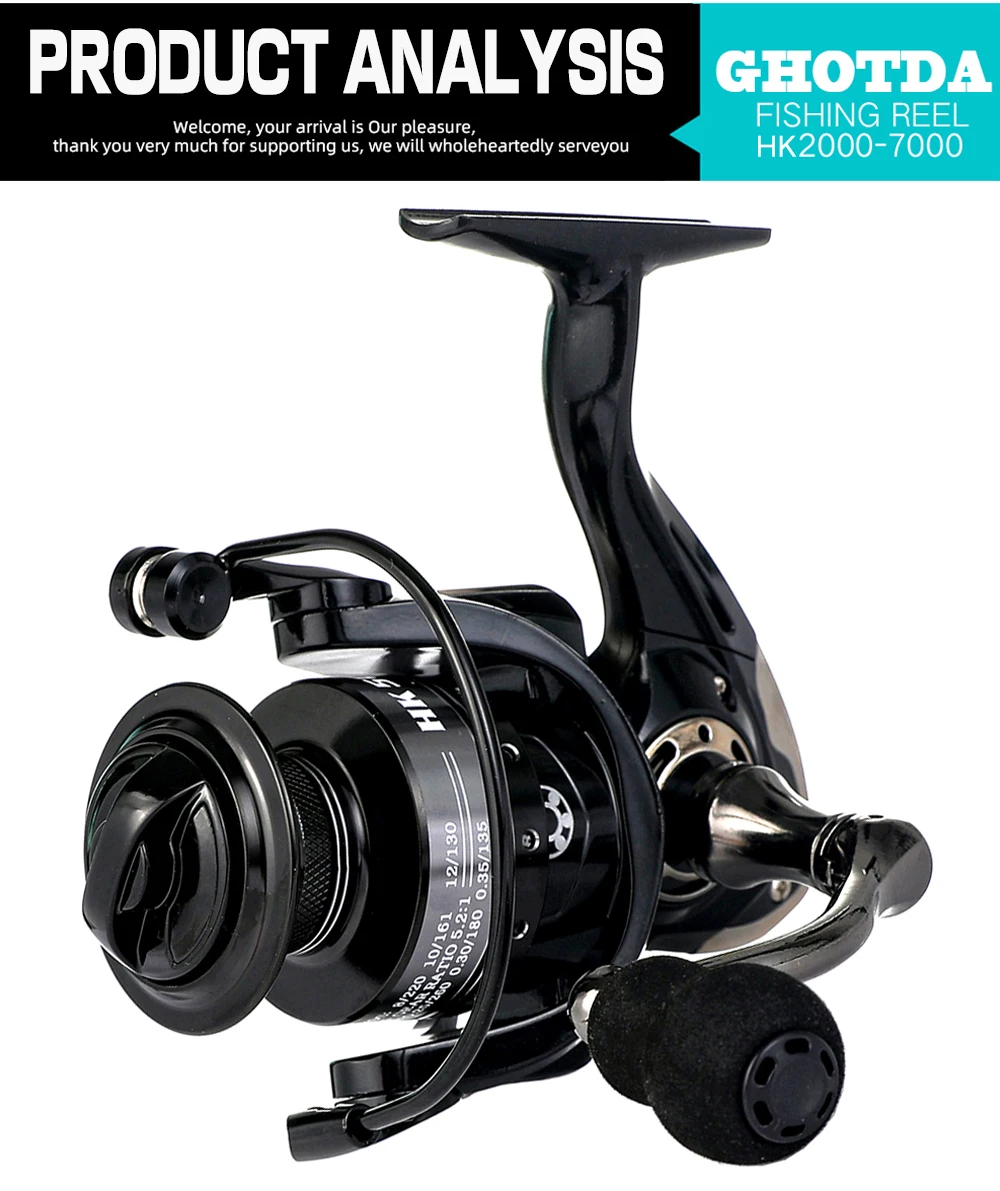 Carrete de pesca giratorio con indicación de alarma de mordida de pescado, arrastre frontal de 8KG, 2000: 1, 3000, 4000, 5000, 6000, 7000, 5,2