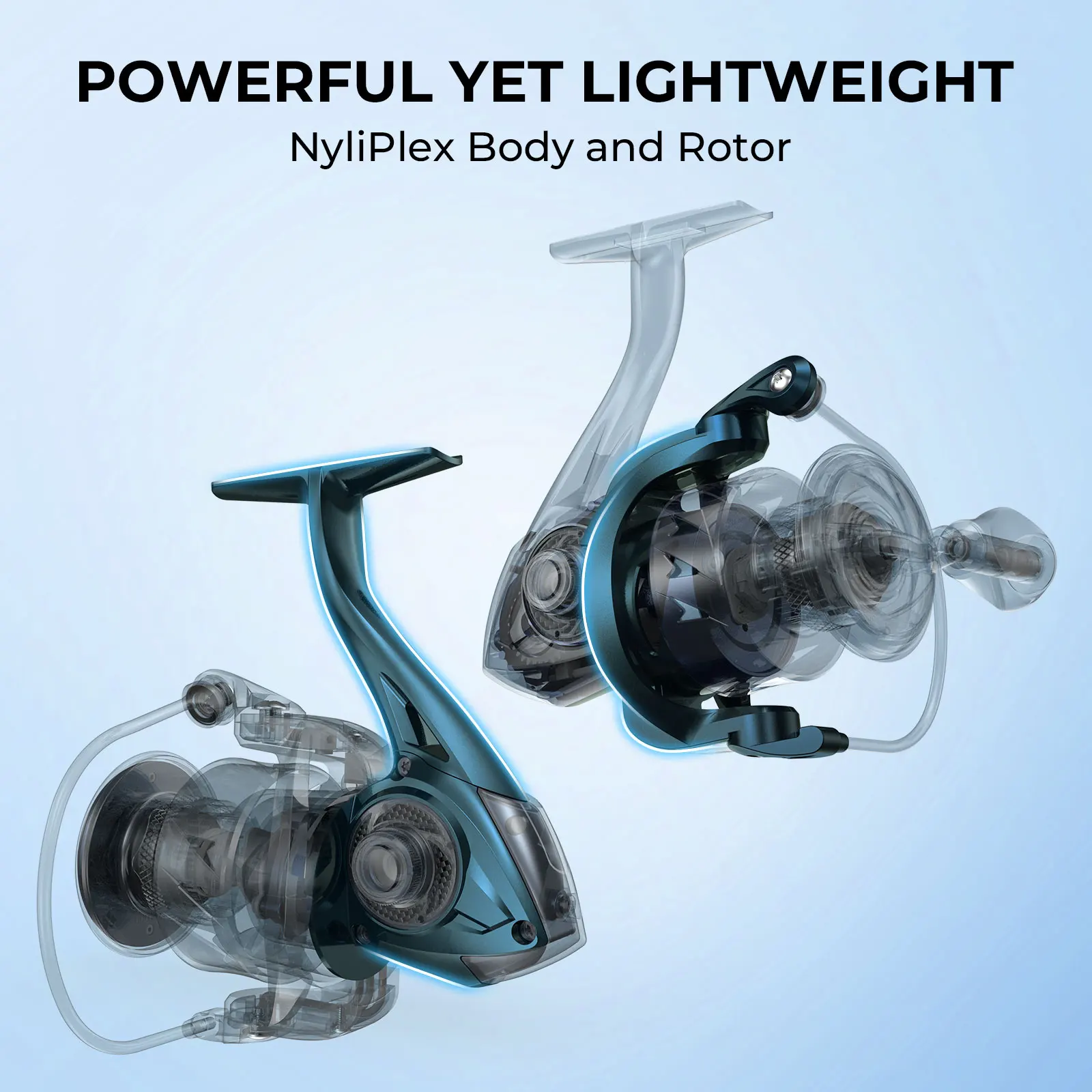 El carrete giratorio MegaJaws está diseñado para brindar energía y mantener el peso bajo.Elaborado con un cuerpo y un rotor NyliPlex, logra el equilibrio perfecto entre resistencia y diseño liviano.Su rotor aerodinámico no solo reduce el peso sino que también mejora el rendimiento, brindando una experiencia de pesca inigualable que combina potencia con precisión.