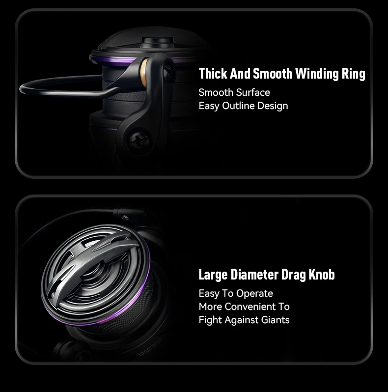 La construcción de aleación de aluminio fundido a alta presión mejora significativamente la resistencia a la torsión y la durabilidad, asegurando un rendimiento estable incluso en entornos hostiles.Maneja sin esfuerzo peces mandarines, lubinas, bagres y más de gran tamaño.