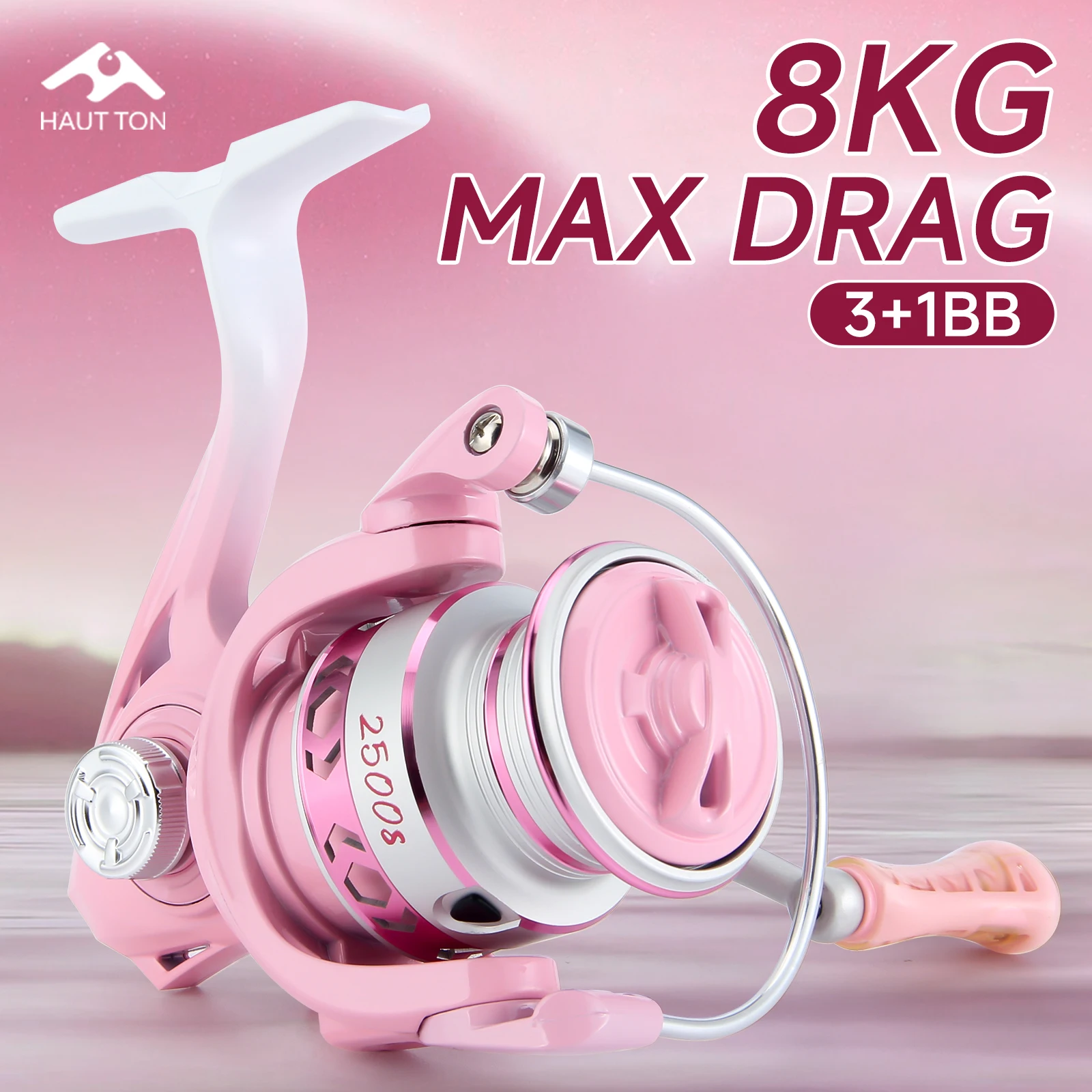 Carrete de pesca giratorio ligero PINK PURPLE, 3 + 1BB, relación de engranaje de alta velocidad 5,2: 1, arrastre máximo de 8KG, carrete de Metal y brazo basculante