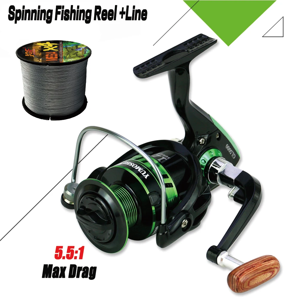 Carrete de pesca giratorio con línea serie 1000-7000, carrete de pesca de carpa ultraligero de 10kg, carrete de Jigging de agua salada, aparejos de marPARÁMETRO