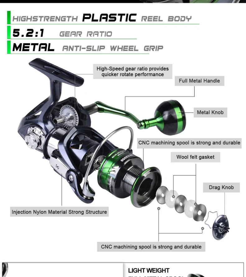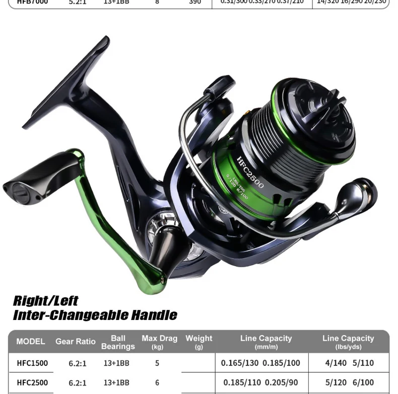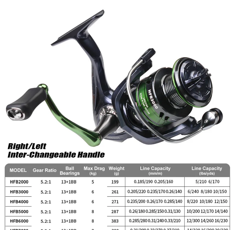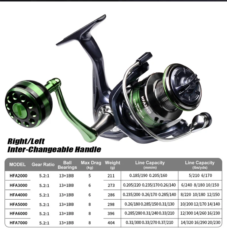 Carrete de pesca giratorio de lubina de agua salada, rueda de Metal atornillable 13 + 1BB, 5,2: 1/6, 2:1, alta velocidad