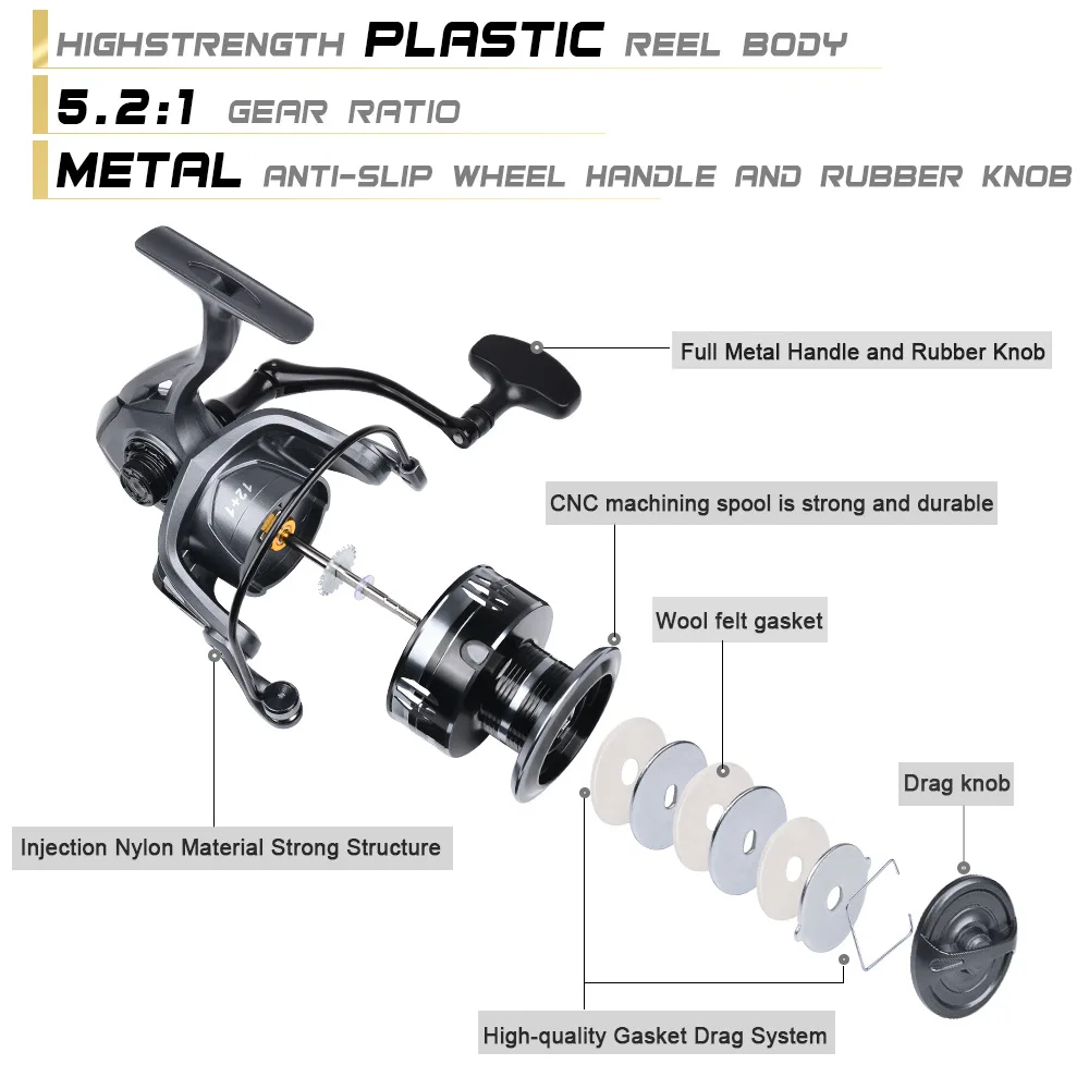 Carrete de pesca giratorio con mango de Metal CNC, carrete de fundición larga para barco de agua salada con espacio cero, relación de engranaje 5,2: 1, rodamientos 2 + 1BB para pesca en el mar