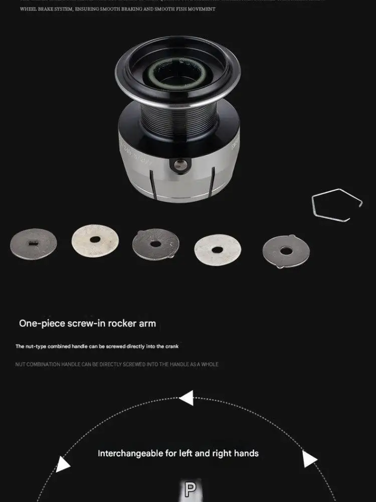 Fuerza de frenado ajustable de 7,6-8 kg: diseño de perilla de ajuste fino, hace frente fácilmente al poder explosivo de diferentes especies de peces, bloquea instantáneamente el pez sin desengancharlo.