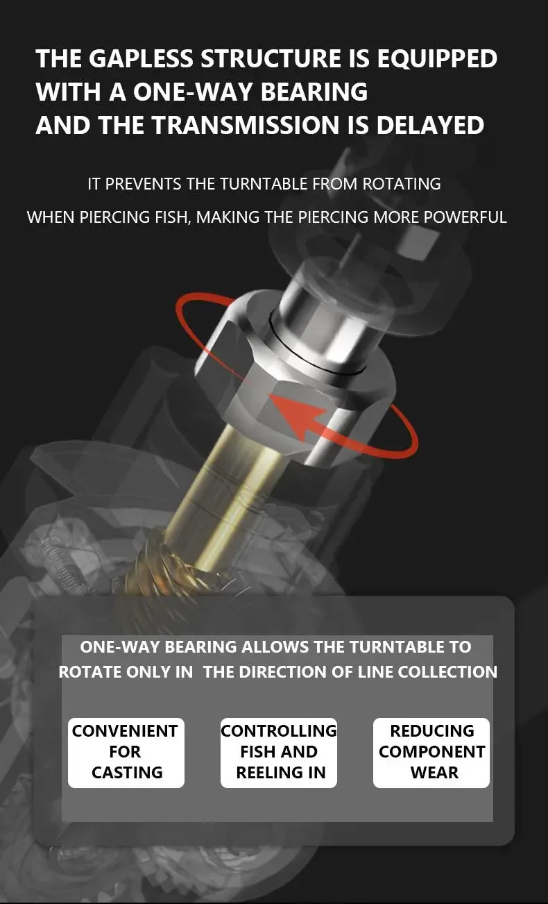 4.La estructura sin espacios está equipada con un rodamiento unidireccional y no hay demoras en la transmisión.Al perforar peces, se evita que el plato giratorio gire, lo que hace que el pez perforador sea más potente y también favorece el lanzamiento, es conveniente para controlar peces y pescar, y reducir el desgaste de los componentes.