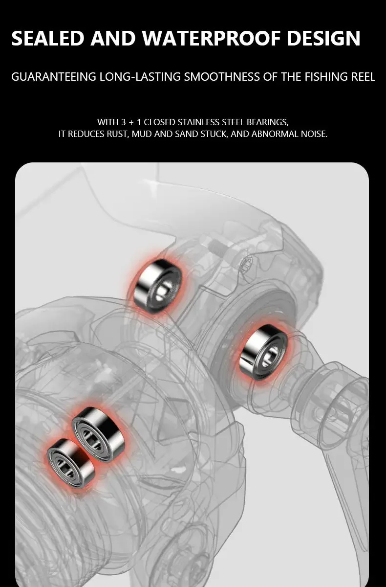 3.El diseño sellado e impermeable, con 3+1 rodamientos cerrados de acero inoxidable, reduce el óxido, el barro y la arena, y el ruido anormal.Al mismo tiempo, la estructura de entrada antiagua del carrete bloquea el barro y el líquido, garantiza la estabilidad del sistema de frenos y hace que el carrete de pesca sea duradero y suave.