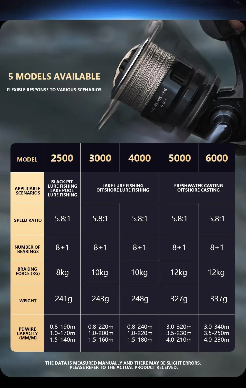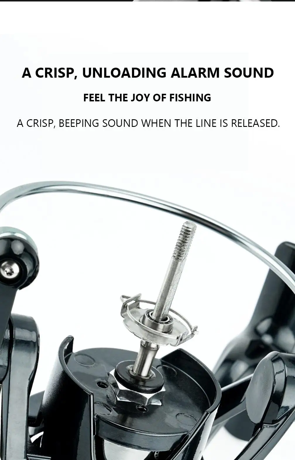 Experimente la emoción de pescar. Un pitido nítido le avisa cuando se enrolla la línea.