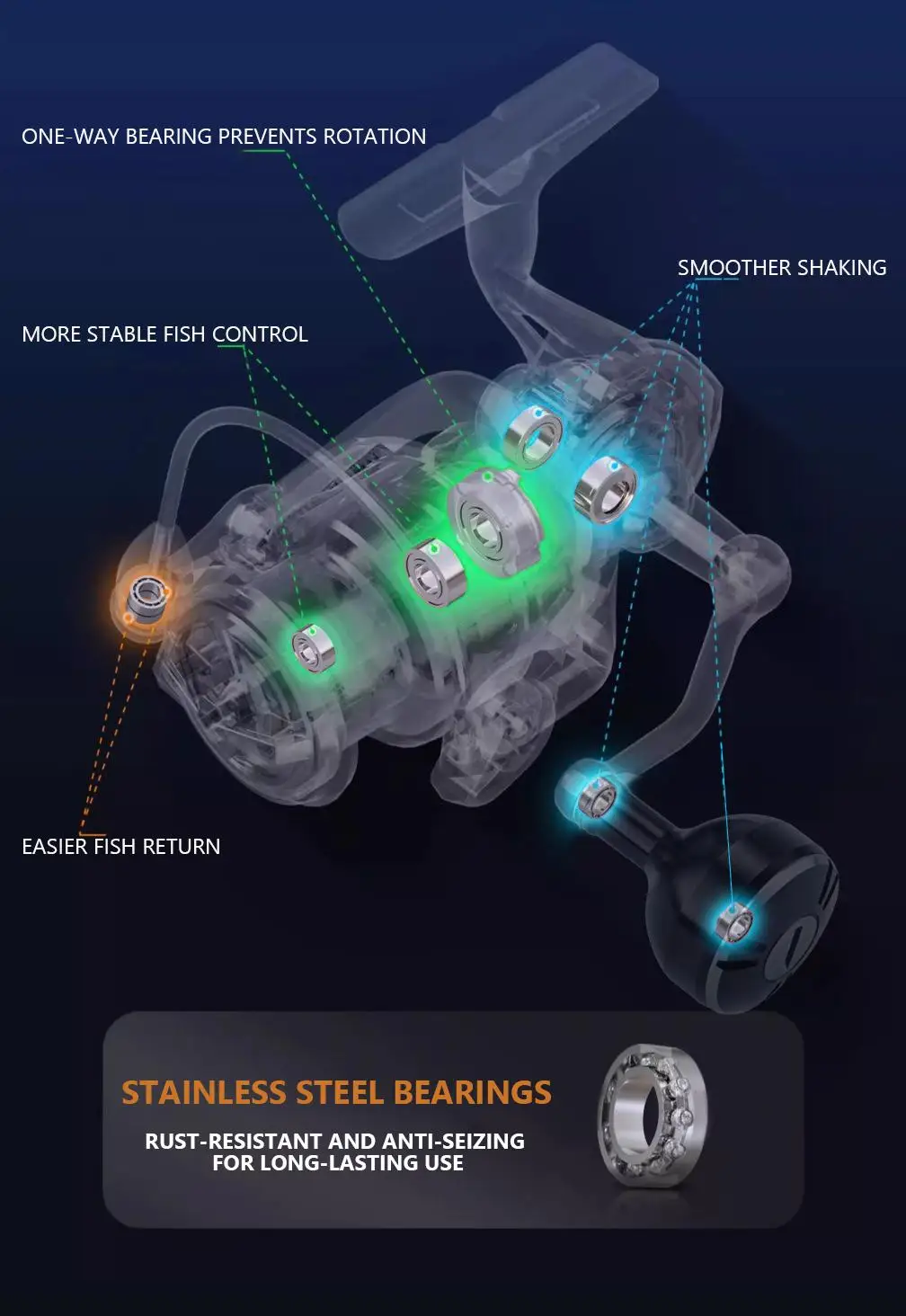 Reduce la fricción y protege la línea para lanzamientos más largos.