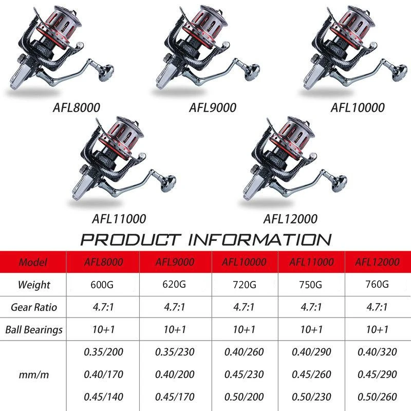 Kowloon 11000 | Peso: 750g | Relación: 4,7: 1 | Arrastre máximo: 18kg | Capacidad de Línea: 0,40mm/290m