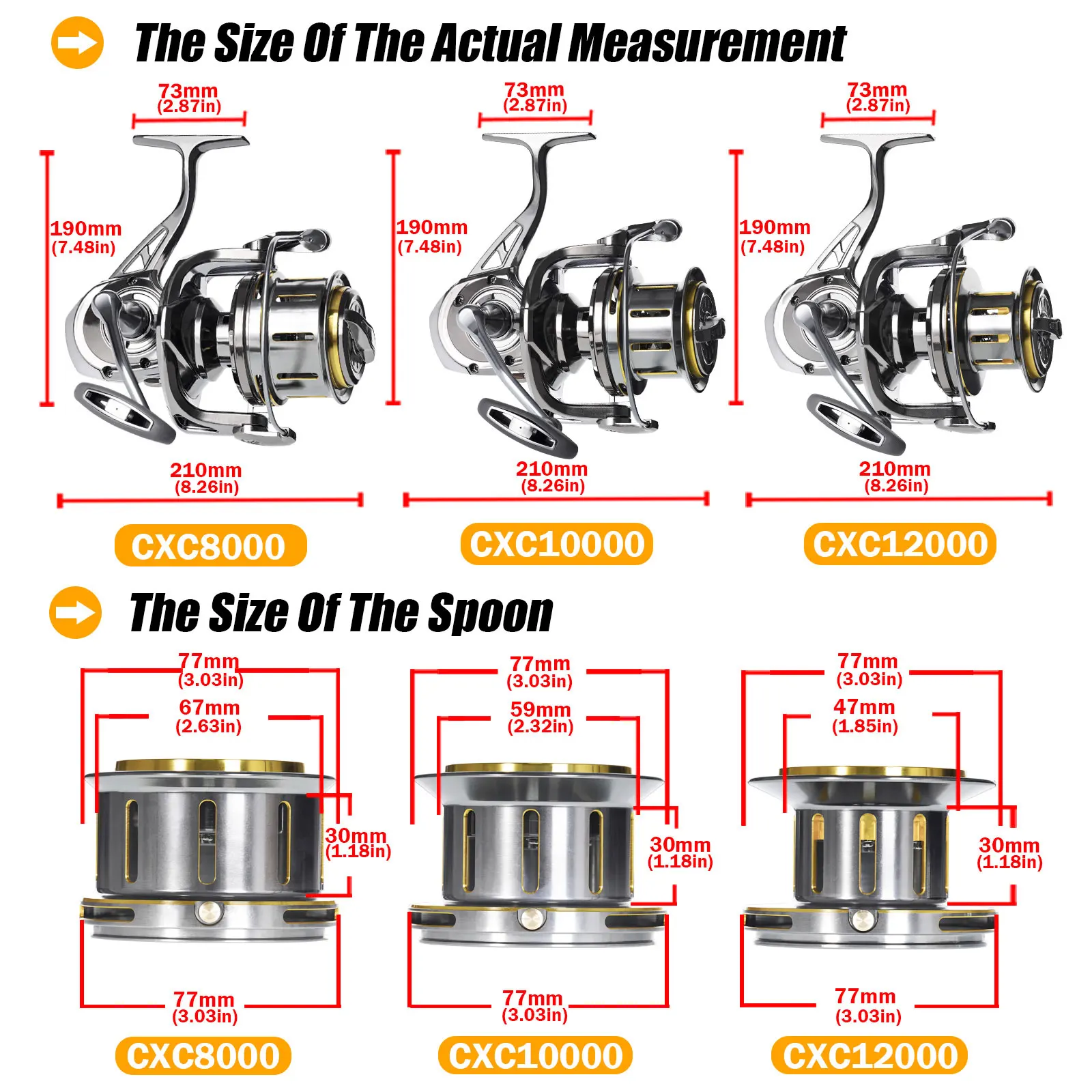 CXC12000 | Peso: 630g | Relación: 4,1: 1 | Arrastre máximo: 25kg | Capacidad de línea (mm/m): 0,40/500 0,48/420 0,57/280