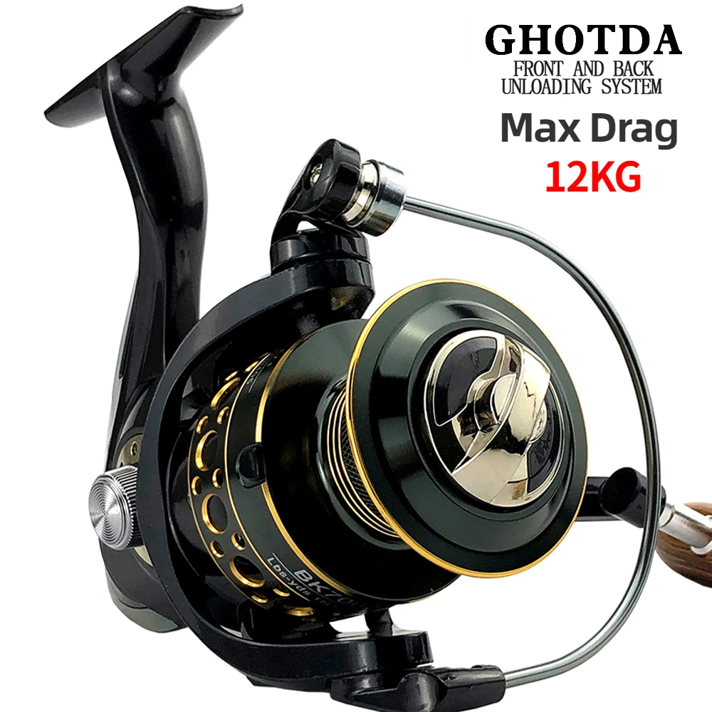 Carrete de Pesca giratorio de Metal, bobina con sonido de alarma, potencia máxima de arrastre de 12KG, 2000, 3000, 4000, 5000, 6000, 7000