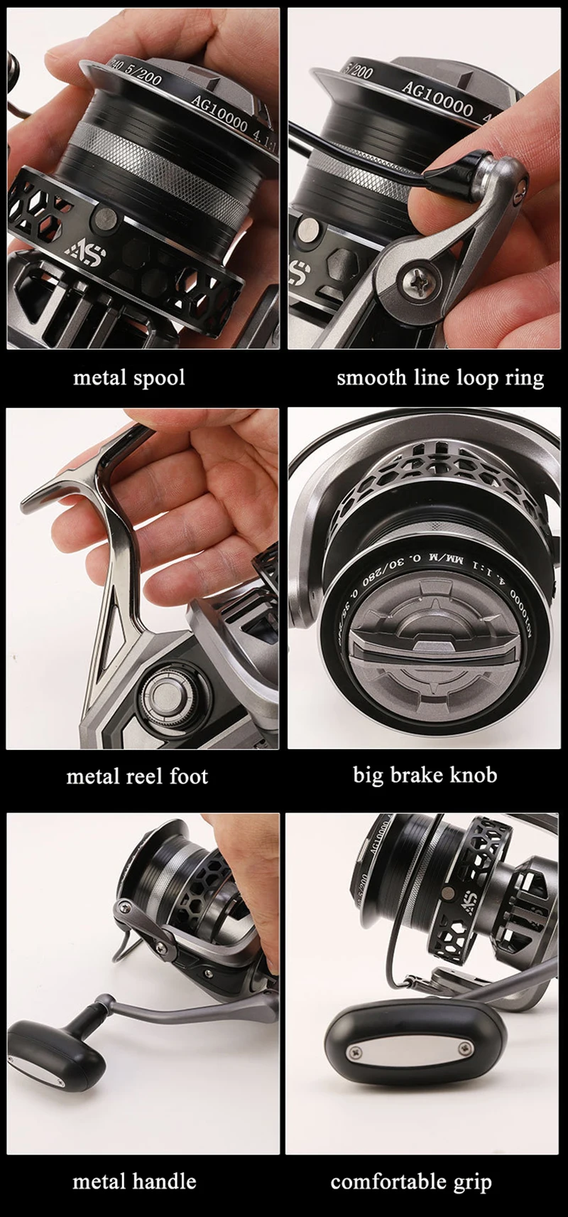Pie de carrete de metal, mango de metal, carrete de metal