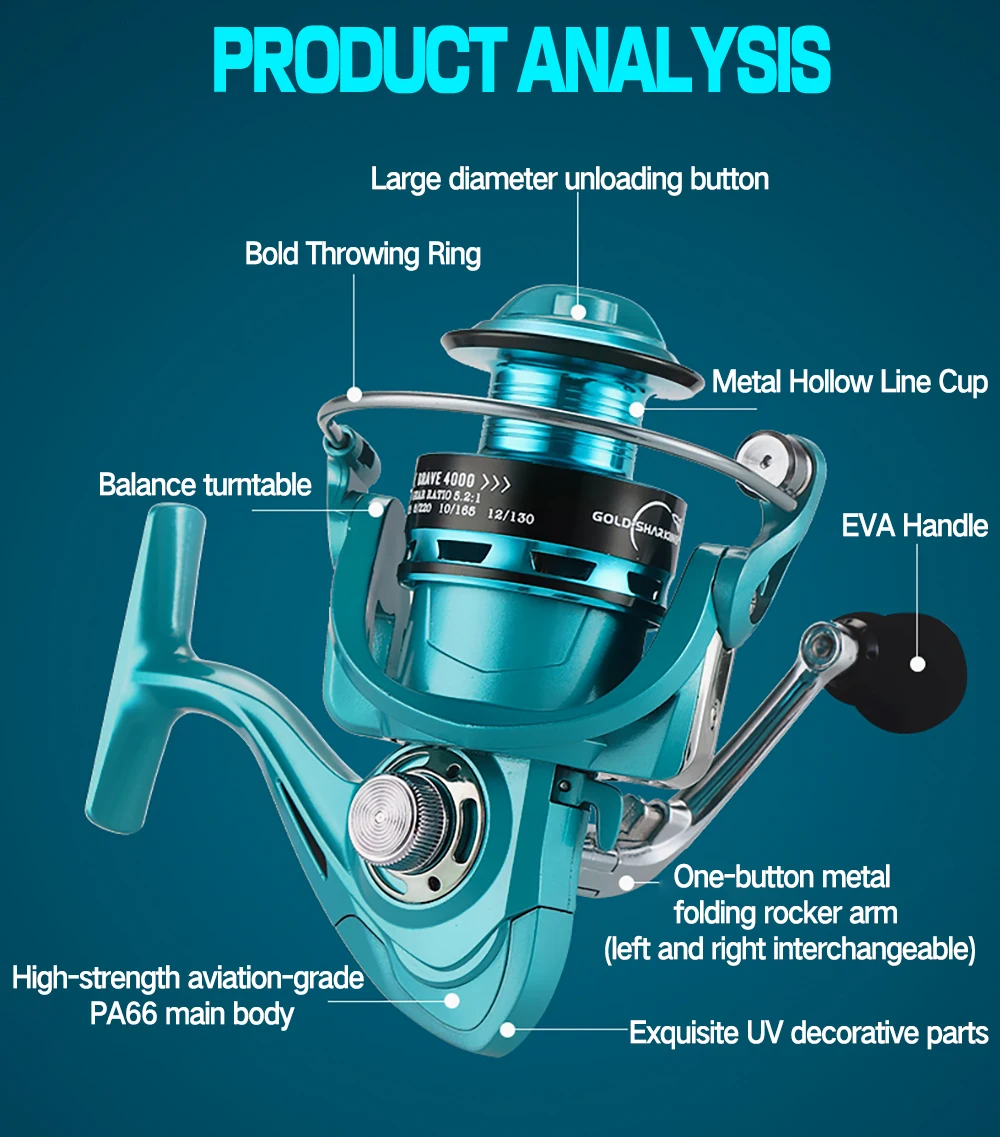 Carrete de Pesca 1000-7000 Metal EVA Grip Spinning Reel Pesca de carpa Carrete de agua salada fresca Pesca 5,2/4,7 Casting largo de alta velocidadDetalles: