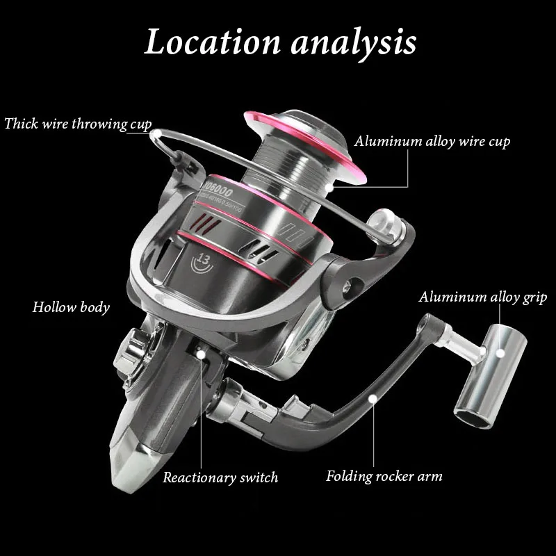 Carrete de pesca giratorio de metal, herramienta de rueda de poste de mar, serie line cup, 1 pieza, 1000-12000