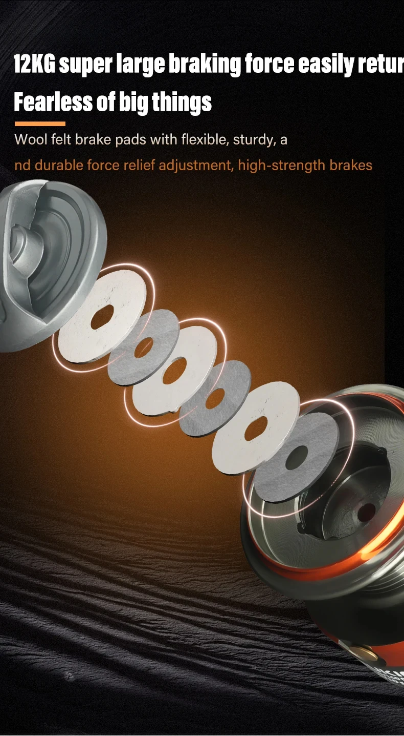 6: Fuerza de frenado ultra grande de 12 kg, fácil de regresar a los peces sin temor a objetos grandes, pastillas de freno de fieltro de lana con ajuste de fuerza de descarga flexible y duradero, frenos de alta resistencia