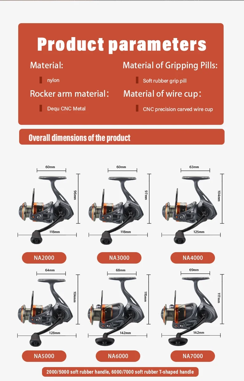 5: Perilla de descarga de gran calibre, ajuste conveniente y flexible de la fuerza de descarga, fácil de manejar peces grandes; La cubierta de descarga viene con un anillo de goma impermeable; El balancín está equipado con un anillo impermeable.