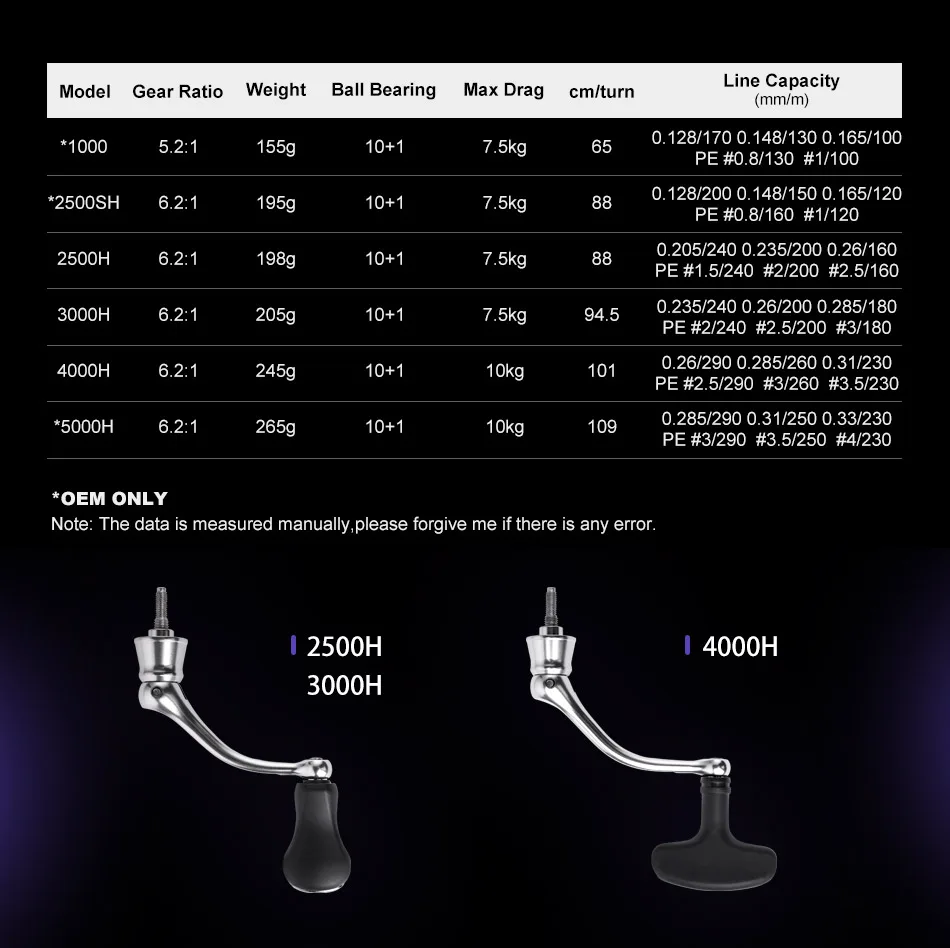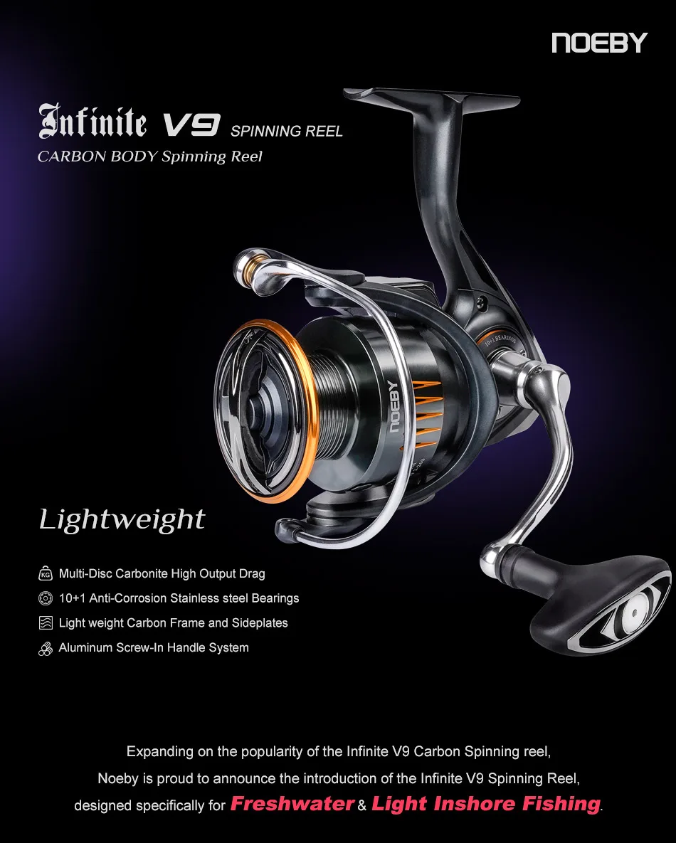Carrete de pesca giratorio Noeby Infinite 2500H 3000H 4000H Series Max Drag 10kg Peso ligero Tornillo de aluminio Carretes de pesca costera
