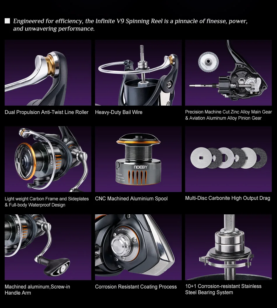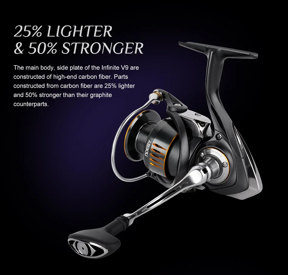 Diseñado para la eficiencia, el carrete giratorio Infinite V9 es un pináculo de finura, potencia y rendimiento inquebrantable.