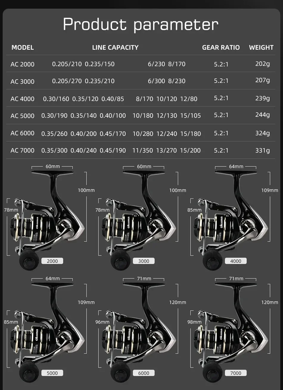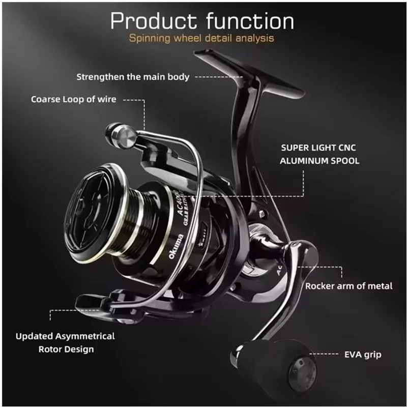 Carrete de pesca giratorio OKMUA 2000 - 7000 arrastre máximo ultraligero 10kg 5,2: 1 carrete giratorio para Surfcasting carretes de Jigging de agua salada