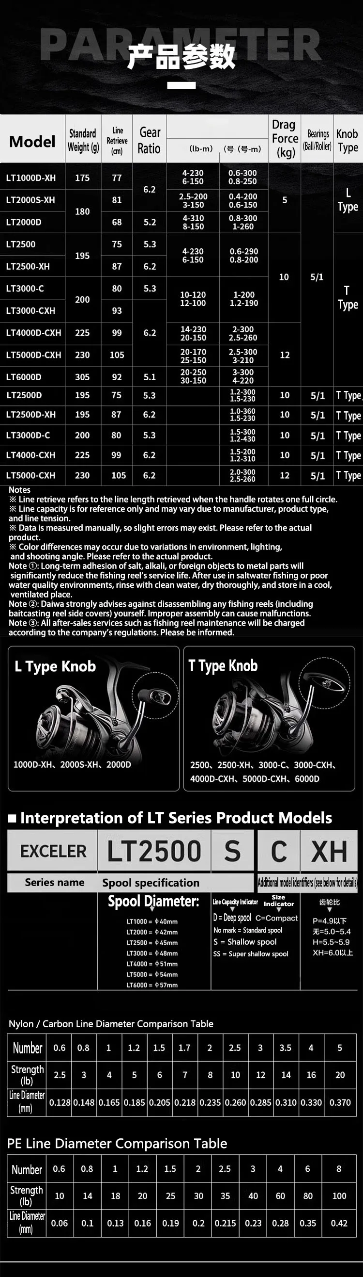 Carrete de pesca giratorio Original 2023 DAIWA EXCELER LT Max 5 + 1BB arrastre 12kg carrete de Baitcasting carrete de agua dulce de agua salada