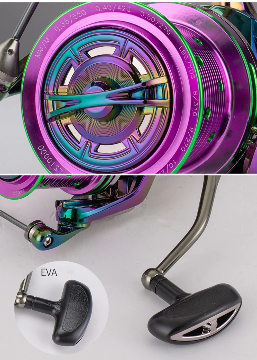 Carrete de Pesca giratorio con pintura que cambia de Color, accesorio para barco de mar, relación de engranaje 8000: 1, para Pesca en agua salada, 10000, 12000, 4,7, 19BB