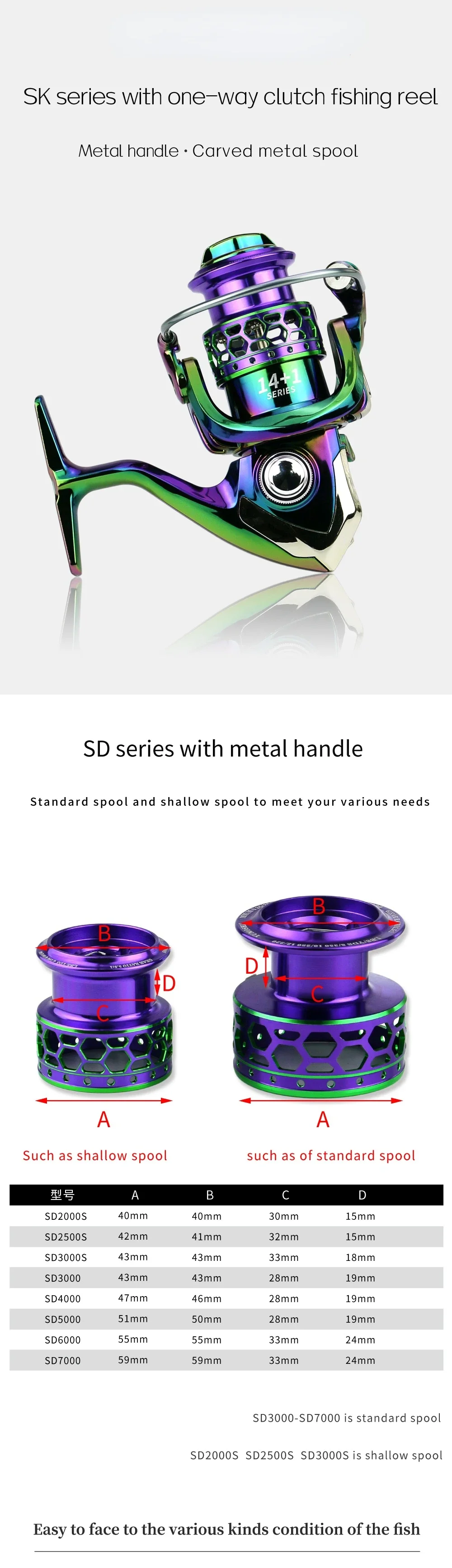 Carrete de pesca giratorio profesional ultraligero 2000 ~ 7000 5,5:1 relación de engranaje 22LB arrastre máximo totalmente metálico para agua dulce salada