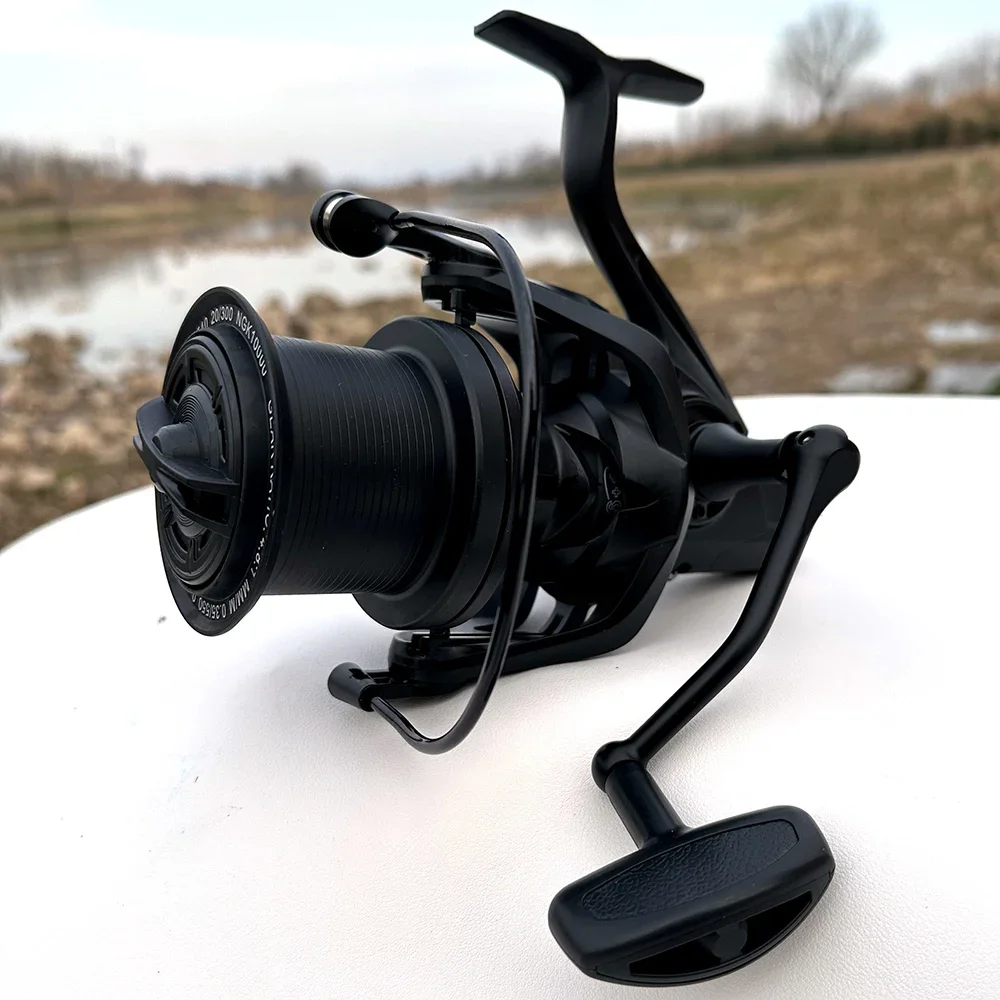 Carrete de pesca giratorio para juegos grandes, carrete de Metal antialgua salada