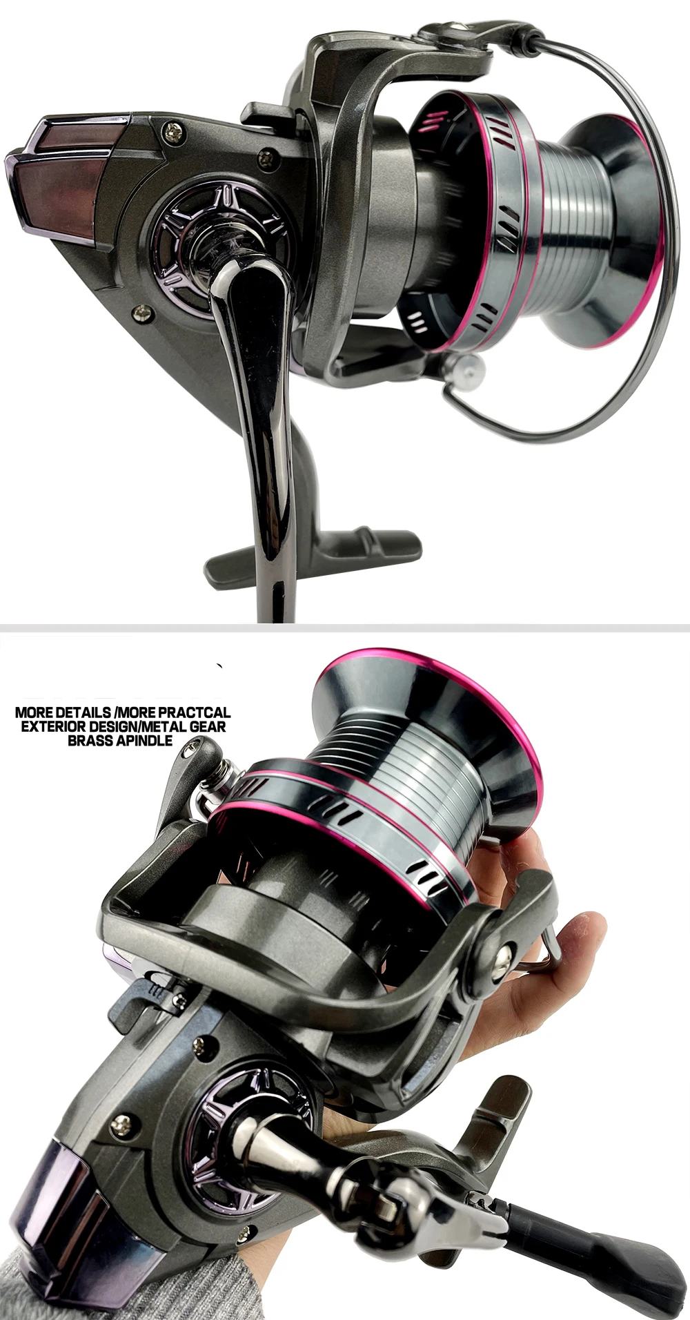 1. Stainless Steel Ball Bearings provides smoother operation2. Metal wire cup, strong and durable,, no damage to the fishing line3. Aluminum alloy handle, firm and comfortable4. Left and right interchangeable rock arm5. Thicker metal throw line coil, durable,not deformed.6. High composite material reel body, strength raided largele.Basic Information:Reel Type: Spinning Fishing ReelGear Ratio: 4.0:1Series: 9000 / 10000 / 12000Spool: MetalHandle: T-shaped, left and right interchangeableMax drag for 9000 series is 20 kgMax drag for 10000 series is 25 kgMax drag for 12000 series is 30 kgPackage included