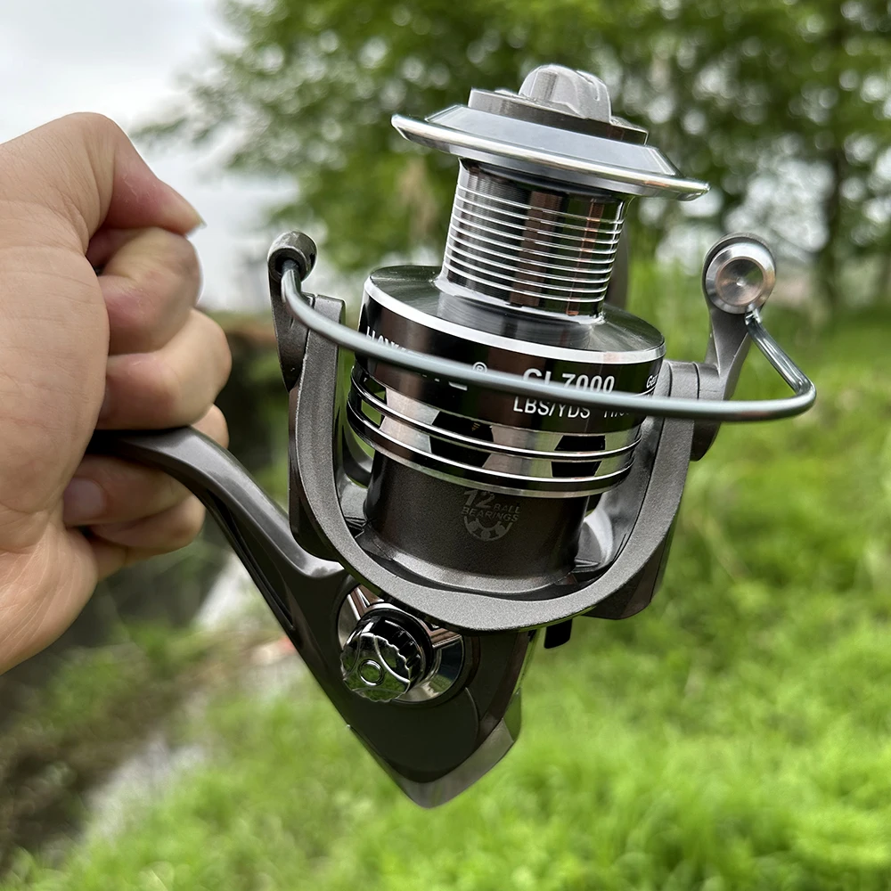 Carrete de pesca Spinning 2000-7000Series Mango intercambiable izquierdo/Derecho Rueda giratoria para aparejos de pesca de carpa Marina Max Drag 12KG