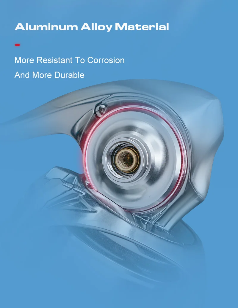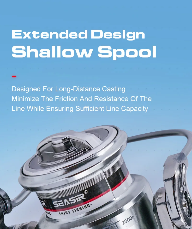 La estructura de carrete poco profunda hace que el ángulo de contacto entre la línea y el borde del carrete se acerque más a la vertical cuando se libera la línea, reduciendo significativamente la fricción de la línea y mejorando la suavidad del lanzamiento.