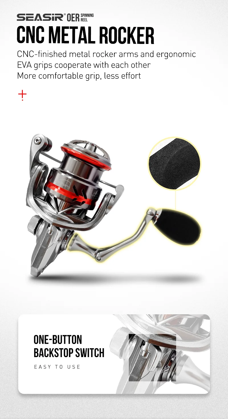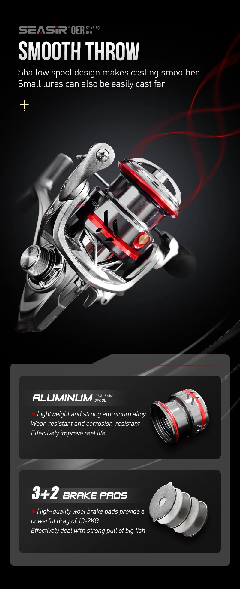 Carrete de pesca SEASIR OERSpinning1500-3500 Carrete poco profundo de aluminio de lanzamiento largo, arrastrar 12 kg5.2:1 Agua dulce y saladabobina