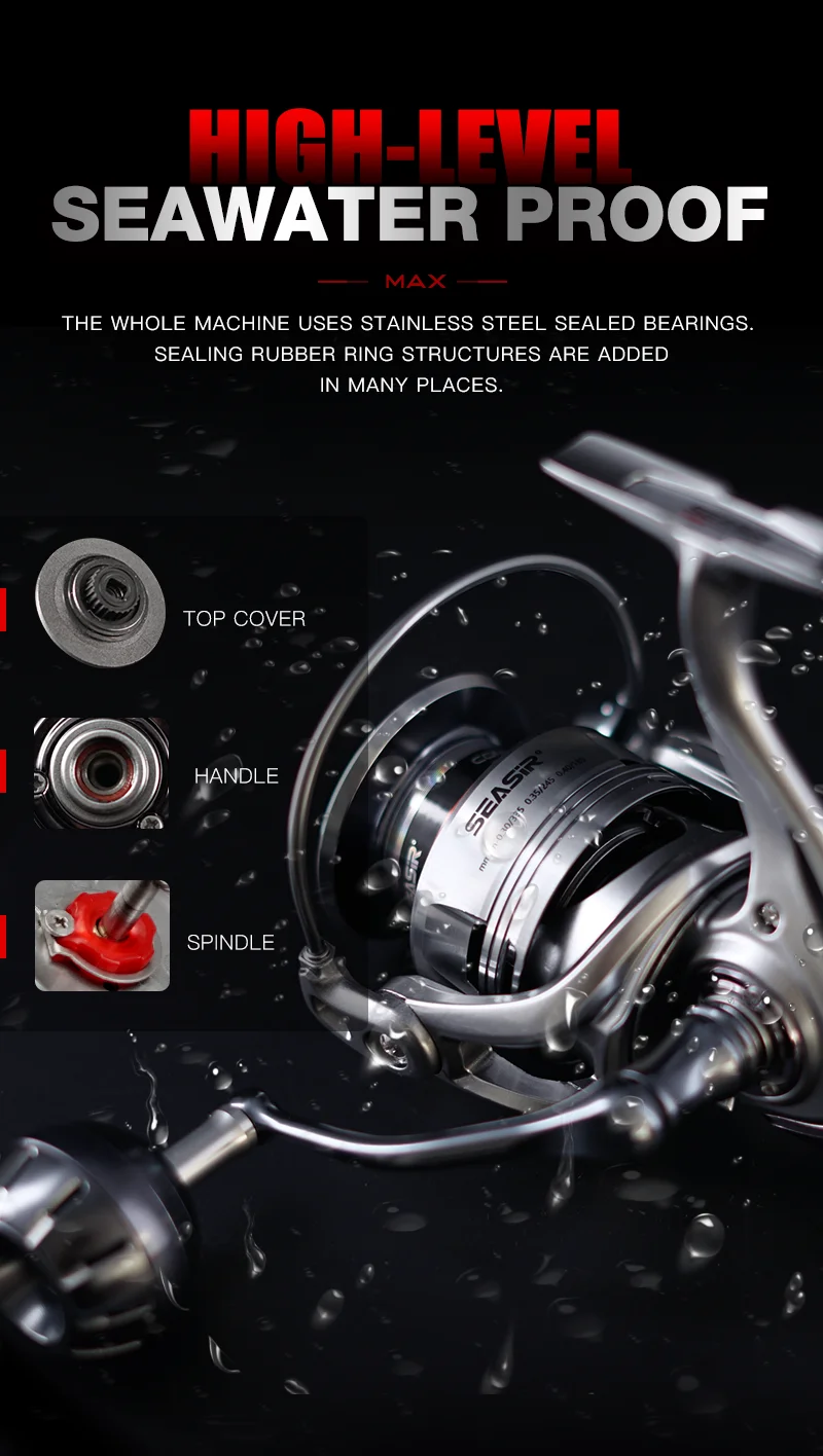 Carrete de pesca giratorio SEASIR All Metal CONTRA MAX 9+1 BB 5,1:1/5,7:1 relación de engranaje serie 3000-6000 Trabajo máximo 25KG agua salada