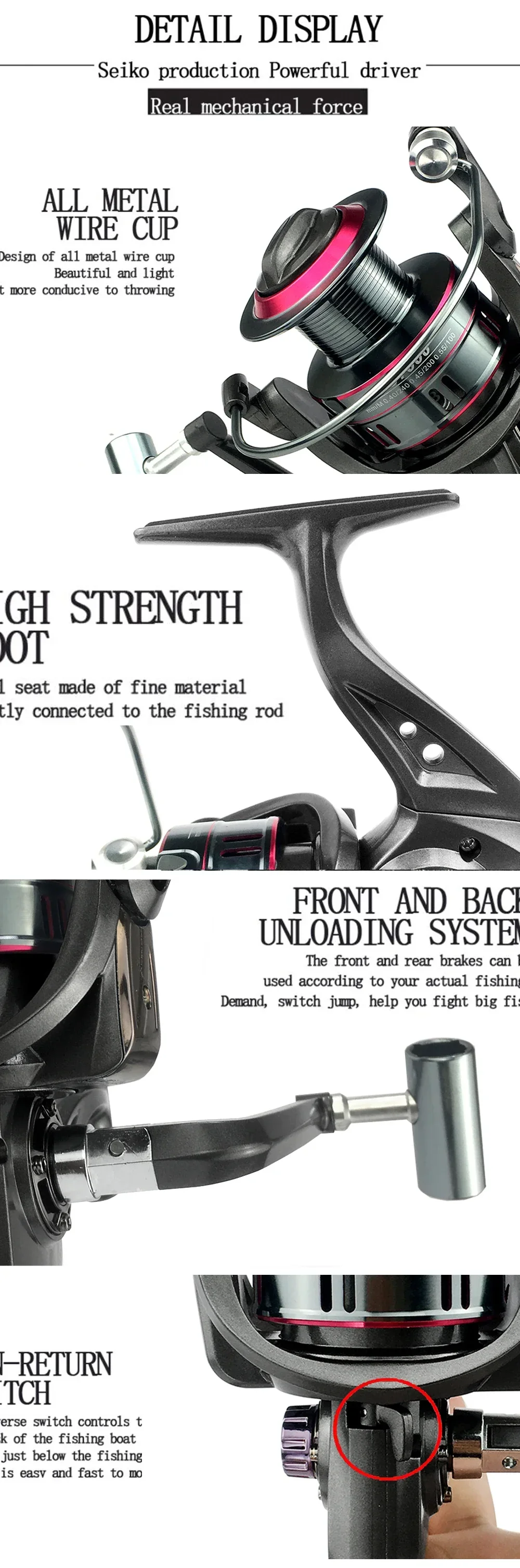 1. Taza de alambre de metal, resistente y duradera, sin daños al hilo de pescar.2.Brazo de roca intercambiable izquierdo y derecho3.La relación de transmisión de alta velocidad proporciona un rendimiento de rotación más rápido4.Bobina de línea de lanzamiento de metal más gruesa, duradera, no se deforma fácilmente.5.Cuerpo del carrete de material compuesto alto, resistencia aumentada en gran medida.