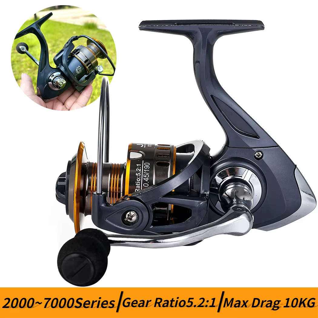 Carrete de pesca giratorio GHOTDA Serie 2000-7000 5,2: 1 Relación de engranaje bobina de Metal arrastre máximo 10KG rueda giratoria potente para aparejos de pesca de carpa