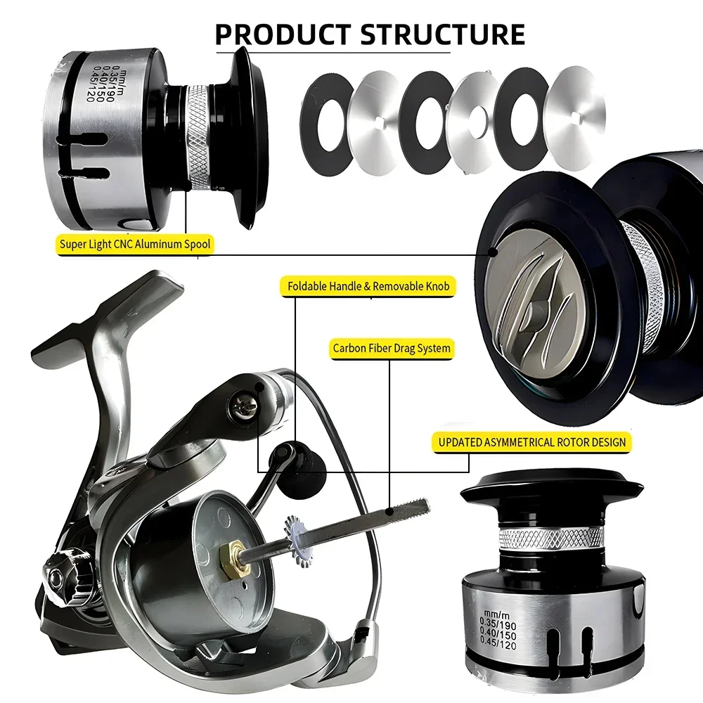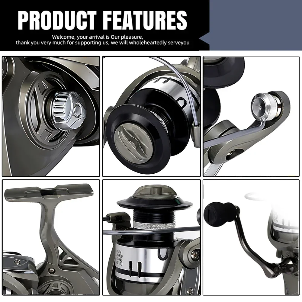 1.Copa de hilo de metal de gran capacidad, resistente y duradera, no se deforma fácilmente y la salida del hilo es suave sin dañar el hilo de pescar.