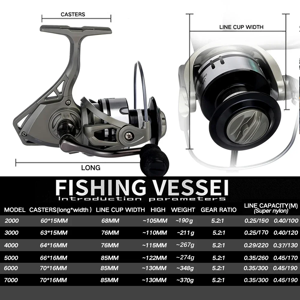 Carrete de pesca giratorio serie 2000 - 7000, ultraligero, arrastre máximo de 8 kg 5,2:1, carrete de pesca de surfcasting, carretes de Jigging de agua salada