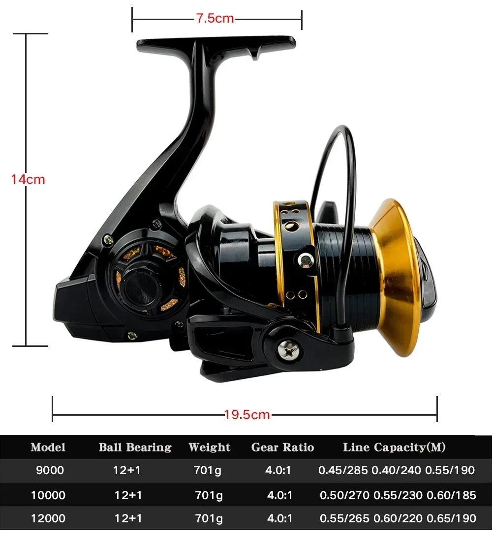 Carrete de pesca giratorio, serie DC 12 + 1BB, arrastre máximo de 30kg, mango intercambiable izquierdo y derecho, 9000, 10000, 12000