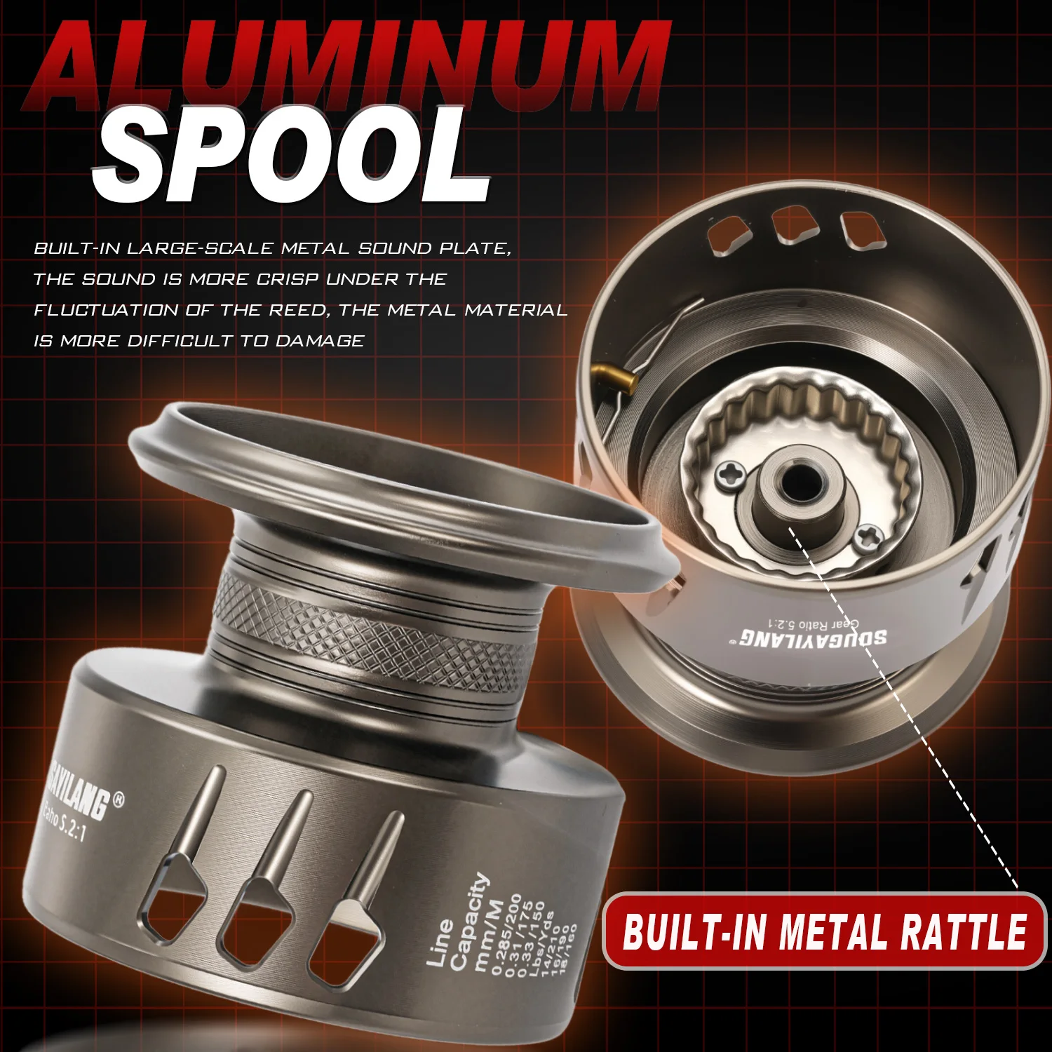 Elaborado con un carrete duradero de aleación de aluminio, este carrete promete longevidad y resistencia al desgaste.