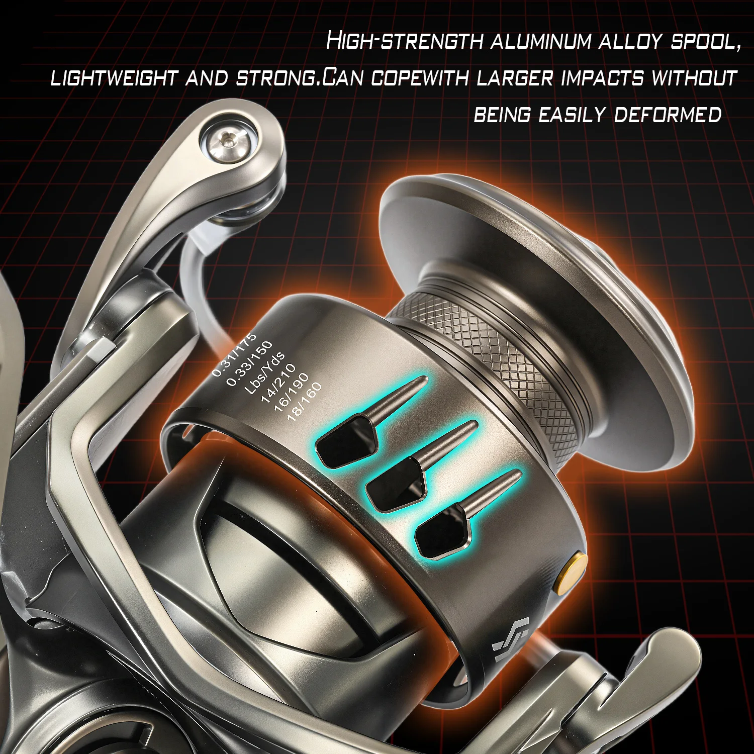 Elaborado con un carrete duradero de aleación de aluminio, este carrete promete longevidad y resistencia al desgaste.