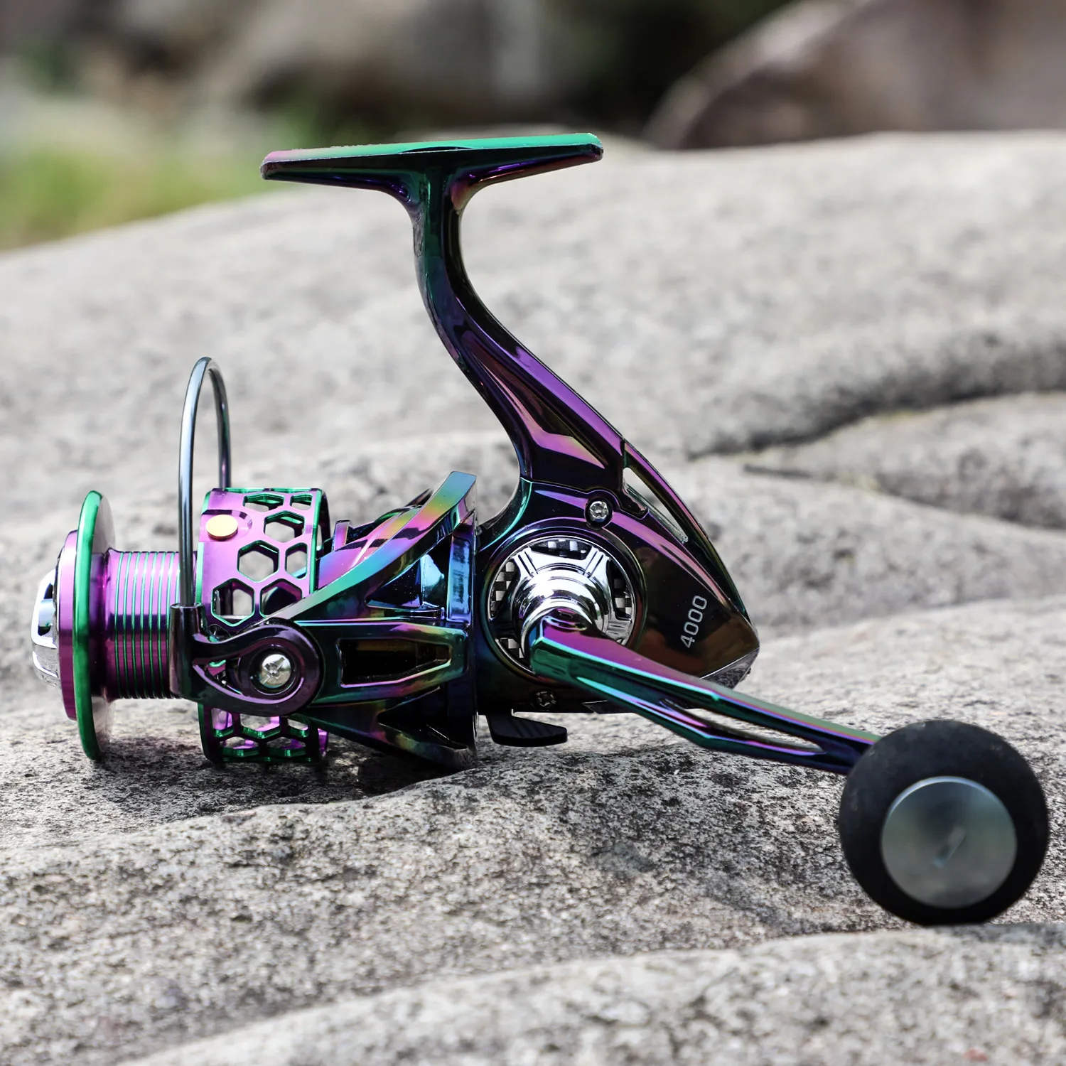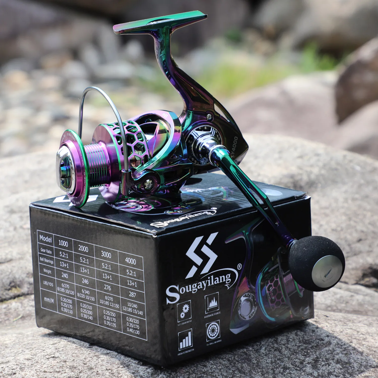 Carrete de Pesca Giratorio Sougayilang 1000-4000, Carrete Ligero de Aluminio CNC, Relación de Engranajes 5.2:1, Carrete Giratorio para Pesca de Lubina y Trucha en Agua Dulce