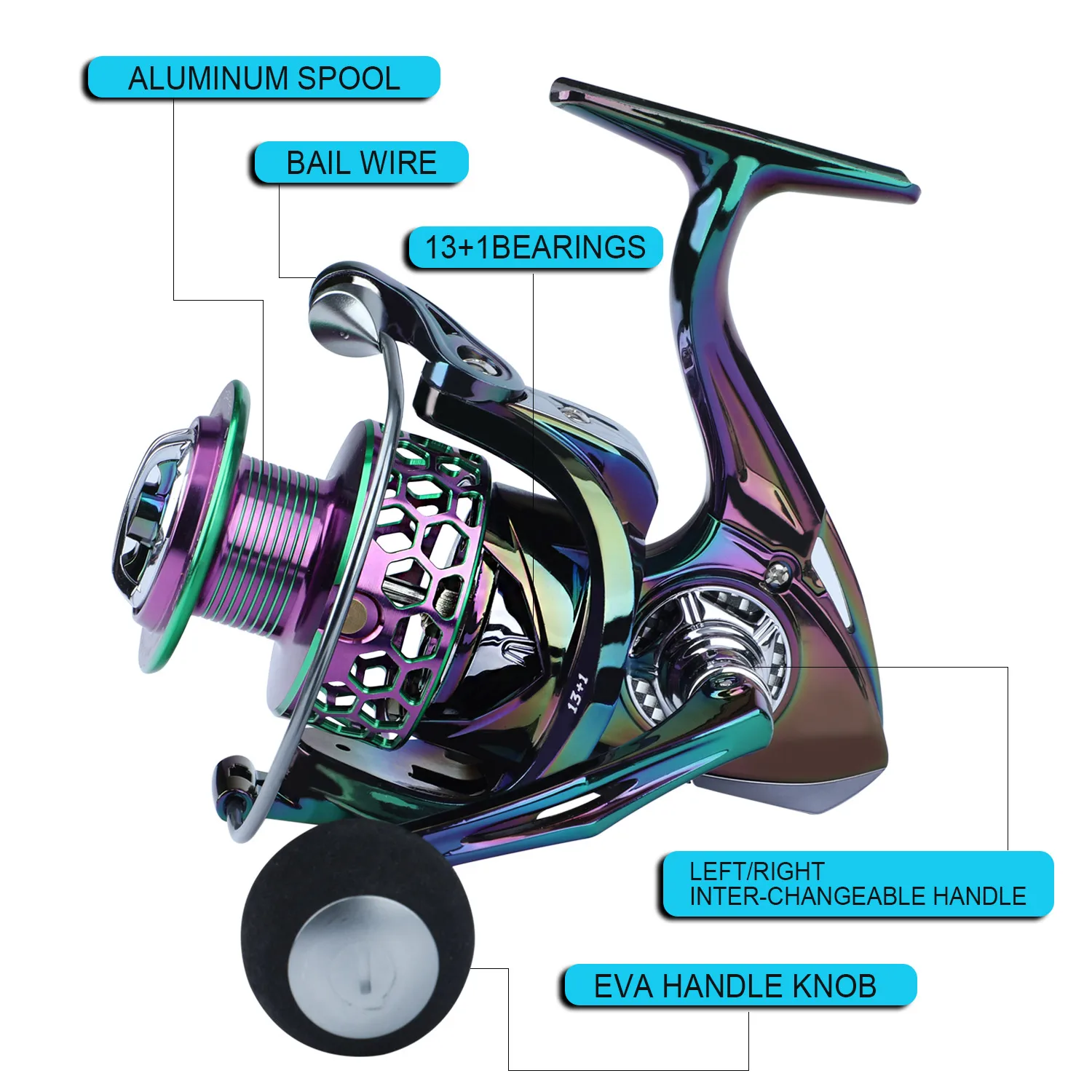 Características: 1. La perilla de EVA puede hacer que el uso sea más cómodo. 2.Carrete de aluminio CNC, especialmente diseñado para la pesca con cebo. Rodamiento de bolas 3.13 +1 para sistema de embrague unidireccional de alto rendimiento. 4. El nuevo asa plegable es más cómoda para transportar y viajar. 5. Artesanía de tallado hueco, la combinación perfecta de practicidad y arte.