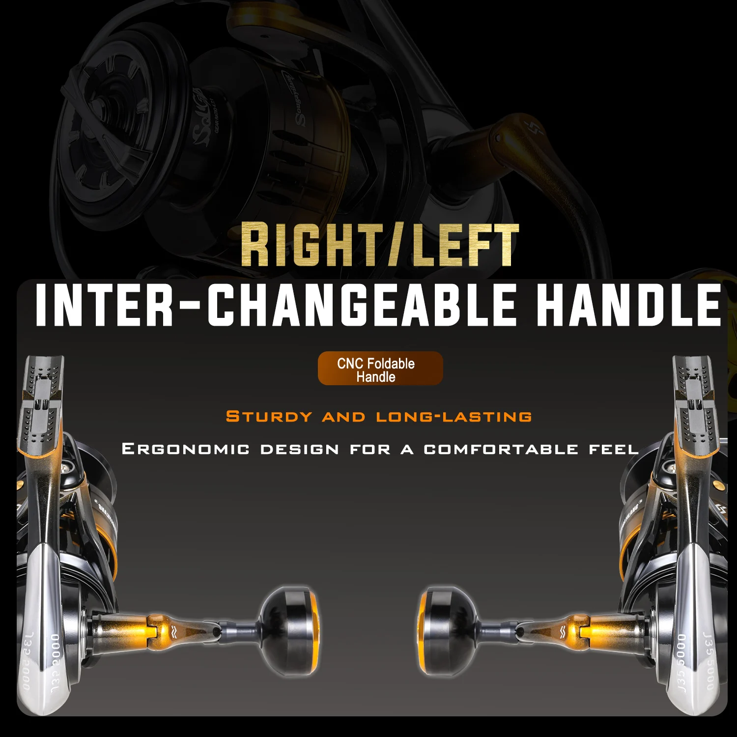 La dirección ambidiestra de la mano permite que los pescadores diestros y zurdos utilicen este carrete con facilidad.