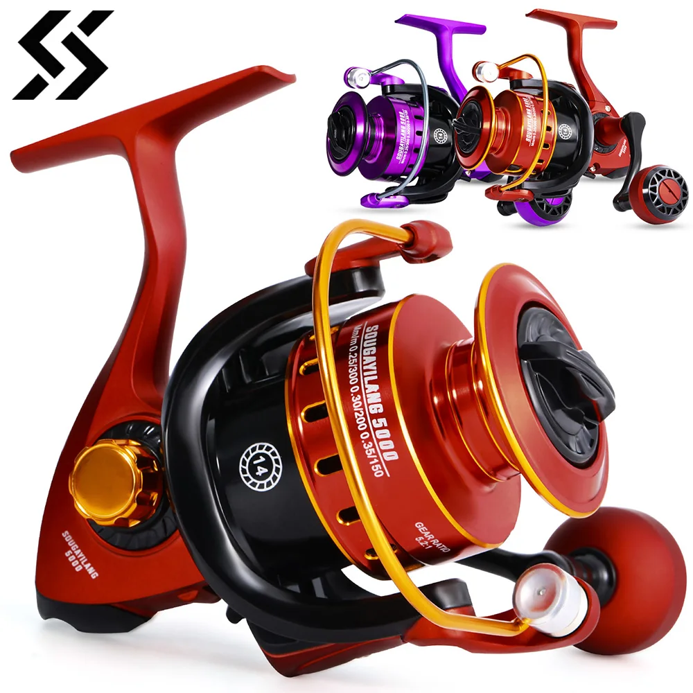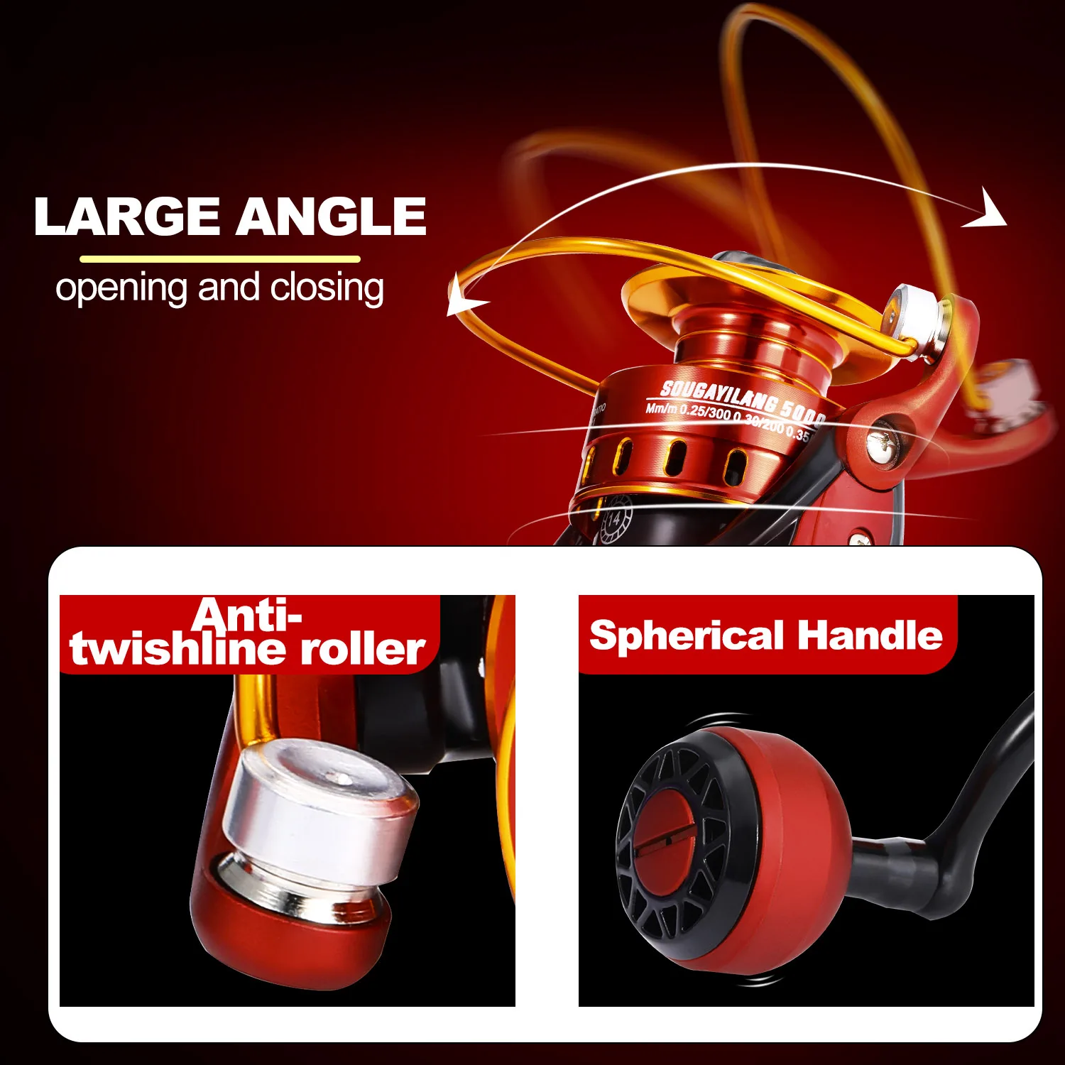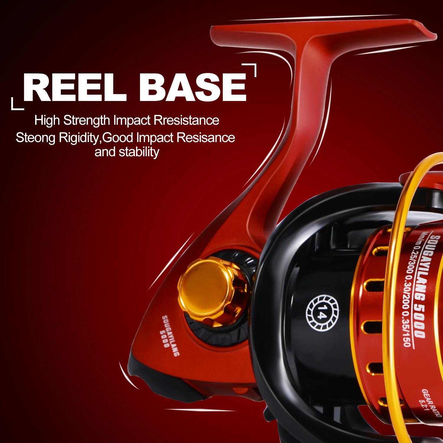 Carrete de pesca giratorio Sougayilang 1000-5000, carrete de pesca con relación de alta velocidad 5,2:1, aparejos de pesca de arrastre máximo de 10KG para pesca de carpa