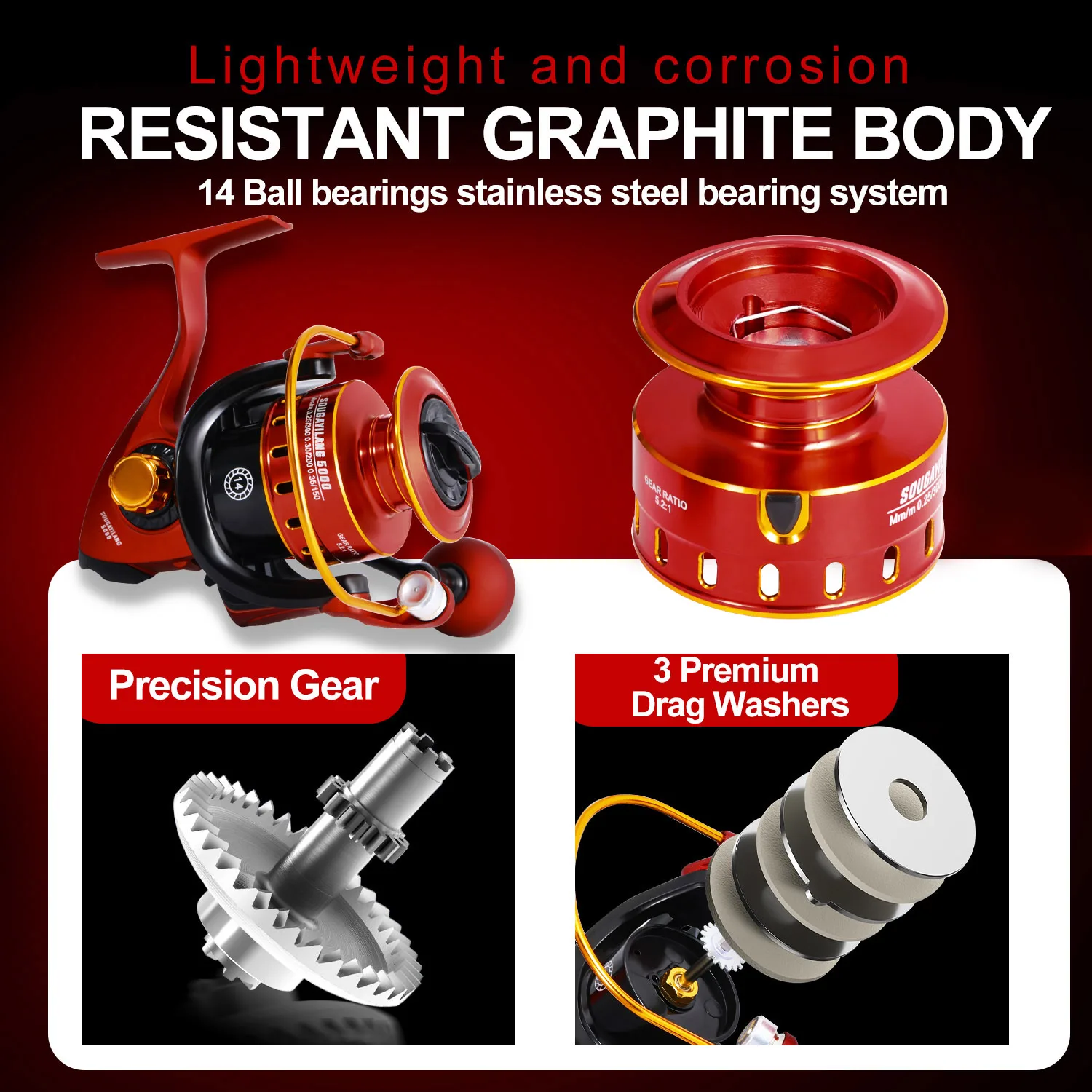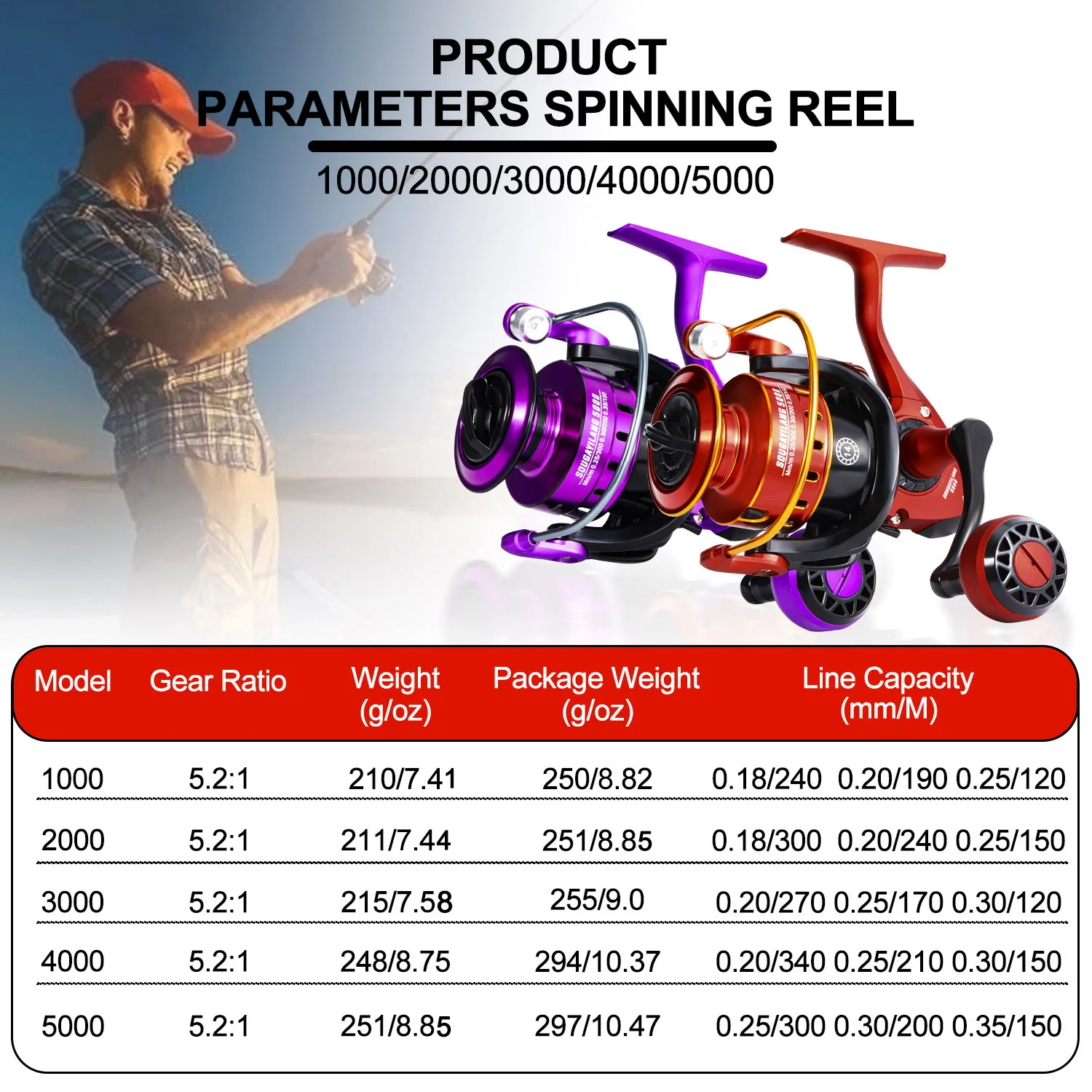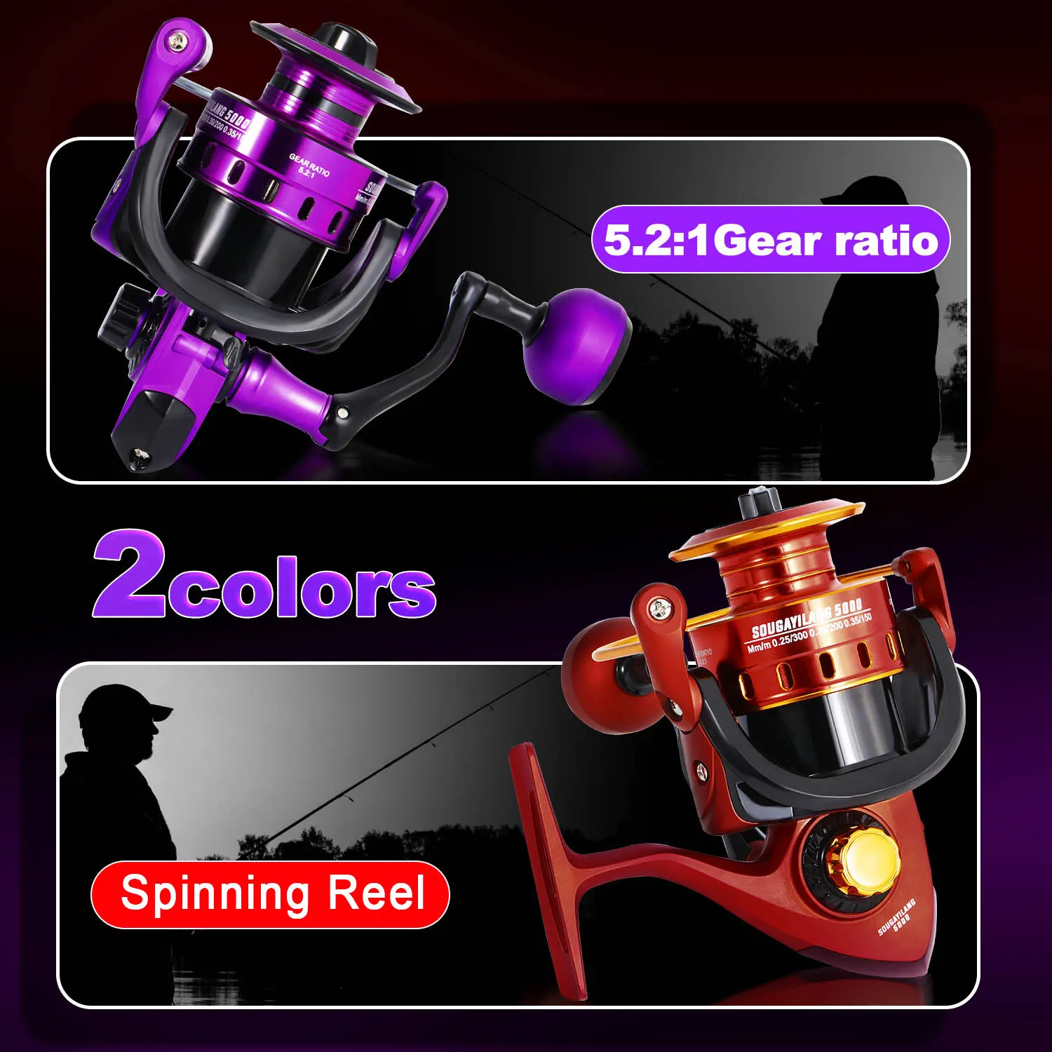 Carrete de pesca giratorio Sougayilang 1000-5000, carrete de pesca con relación de alta velocidad 5,2:1, aparejos de pesca de arrastre máximo de 10KG para pesca de carpa