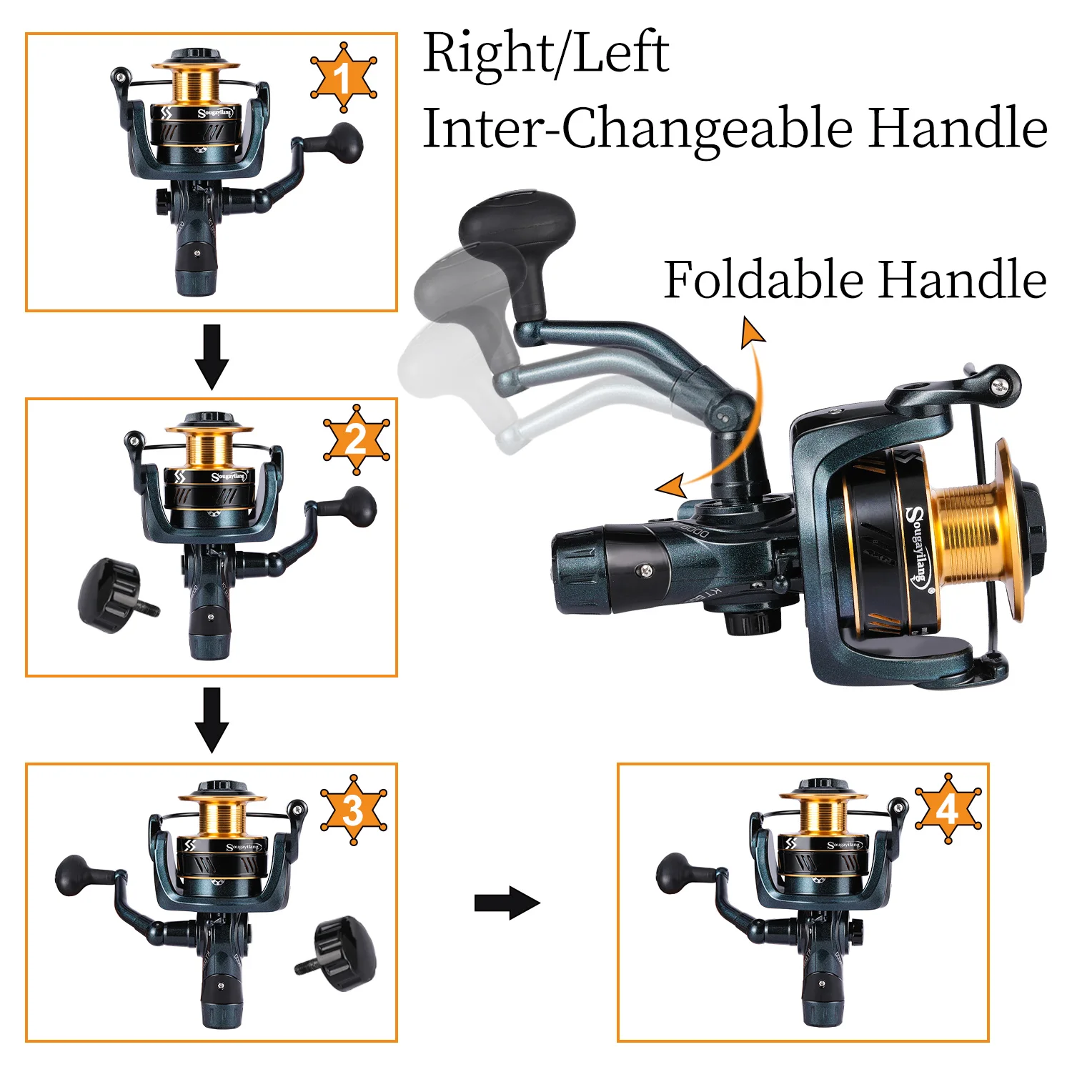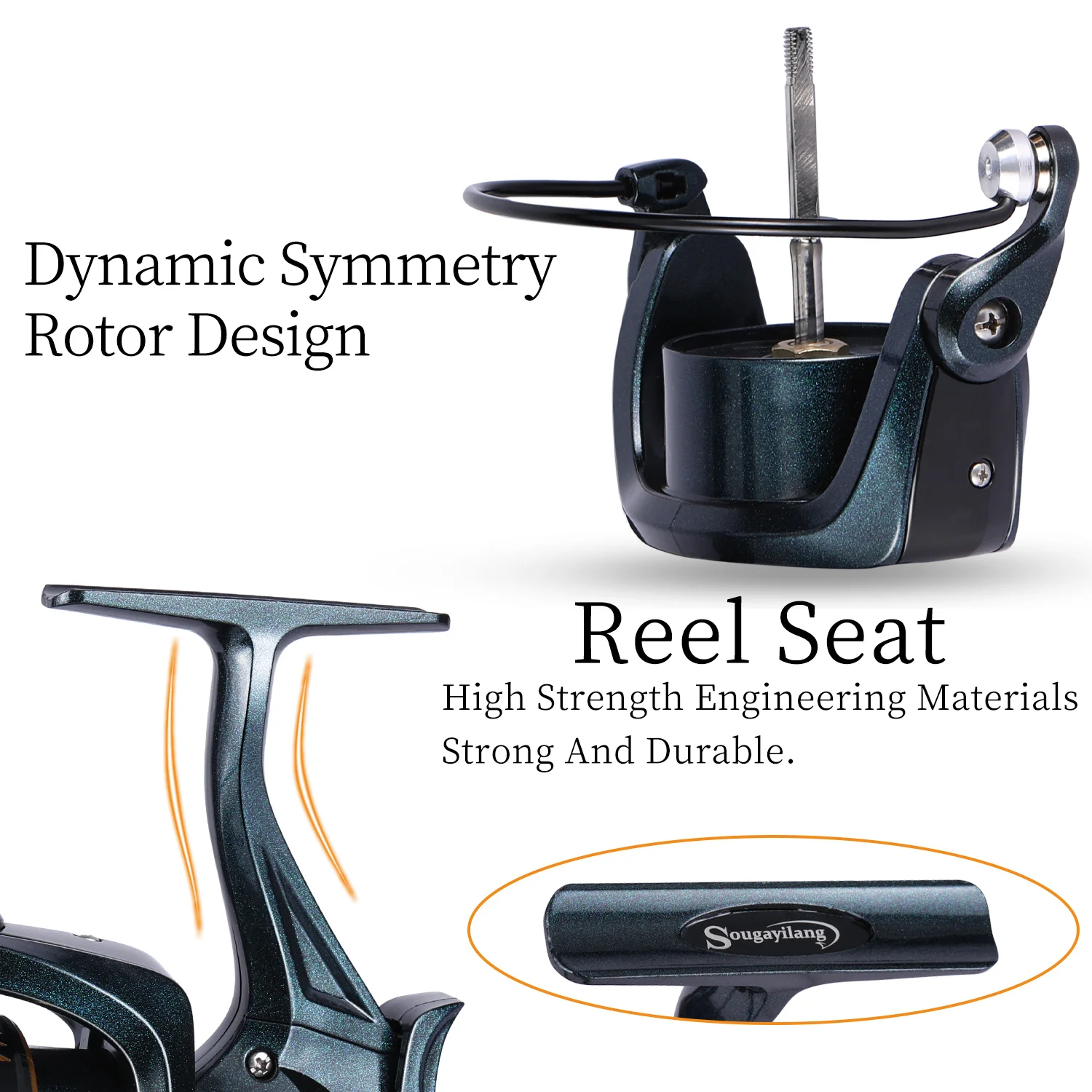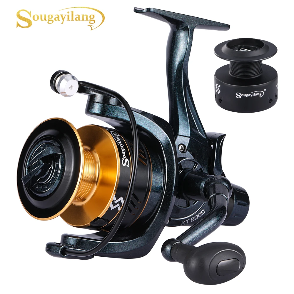 Carrete de Pesca giratorio Sougayilang 5,0: 1, relación de engranaje, modelo 2000-6000, potente carrete de carpa, carrete de Pesca de agua dulce y salada