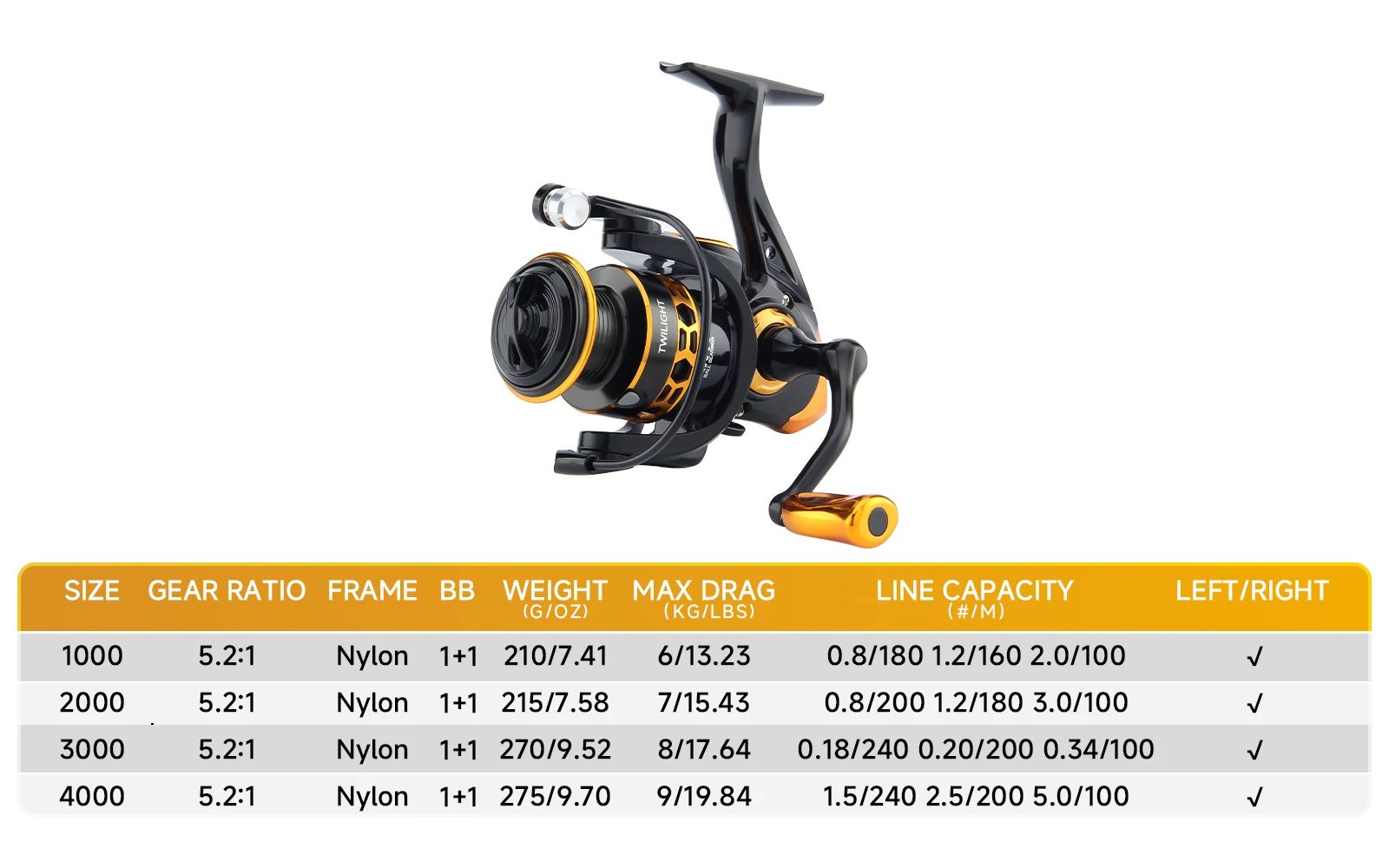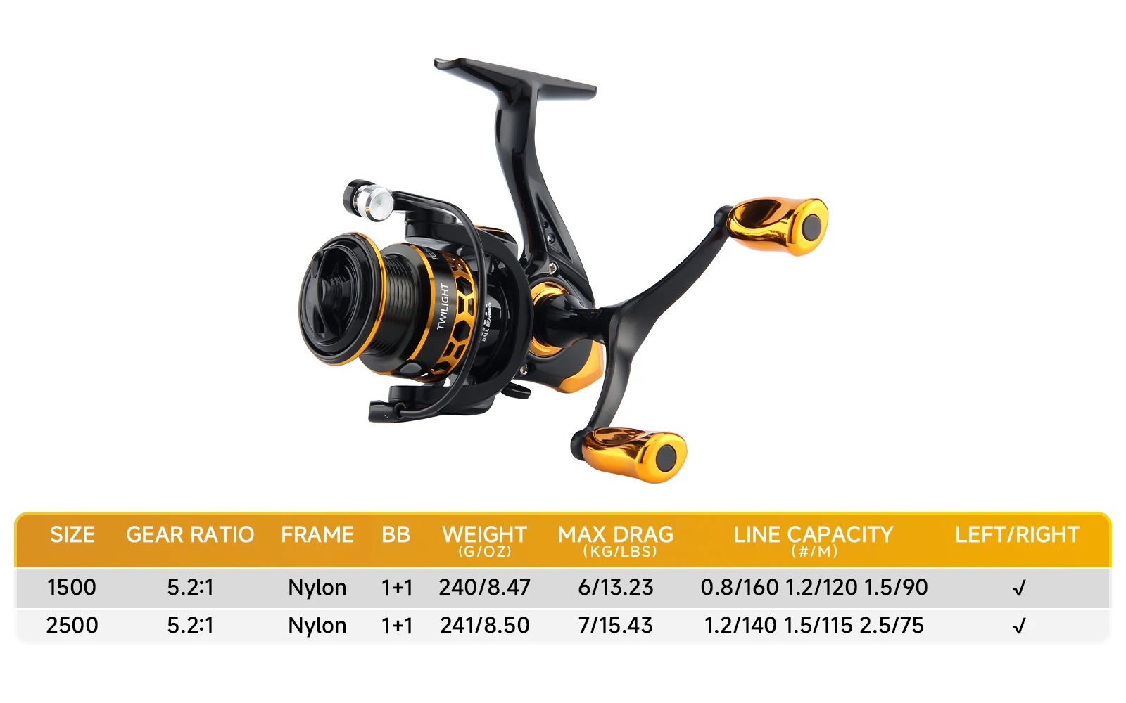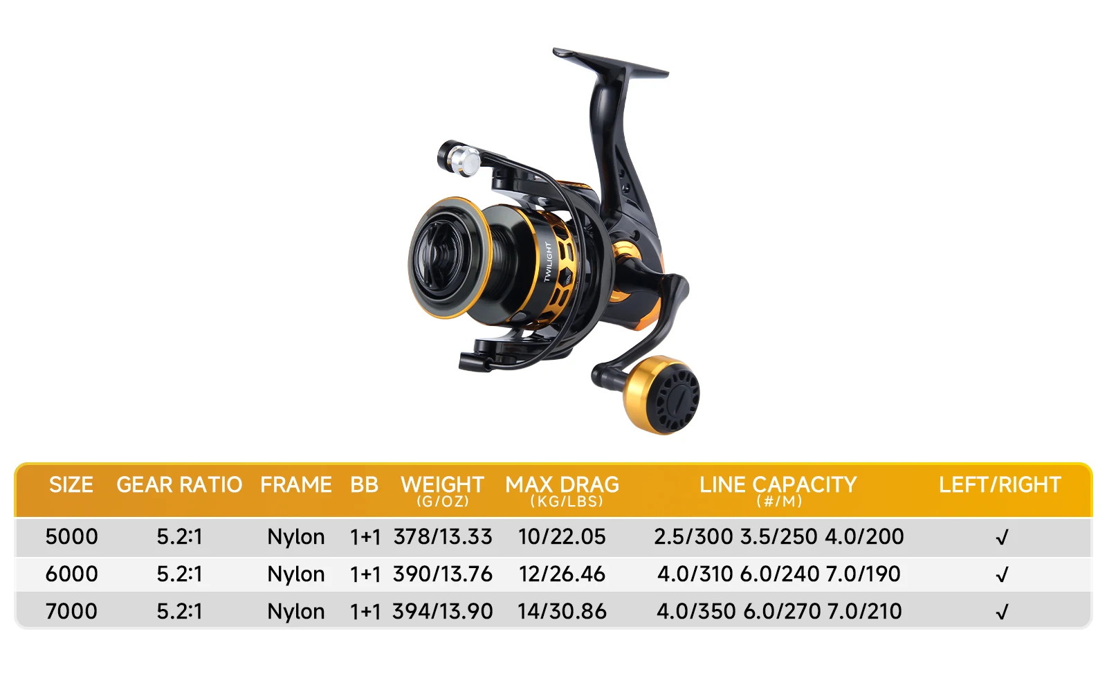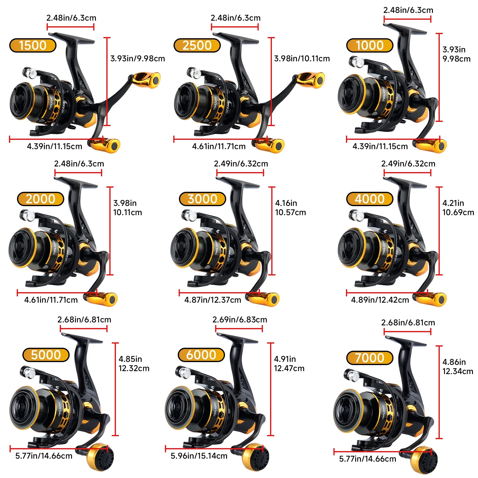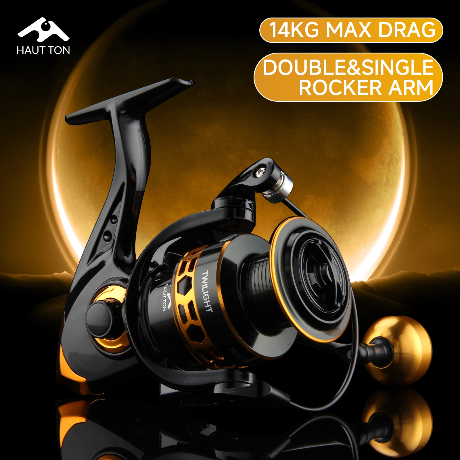Carrete de pesca giratorio TG amarillo 1500/2500/1000-7000, balancín simple y doble de aleación de aluminio disponible, arrastre máximo de 14KG