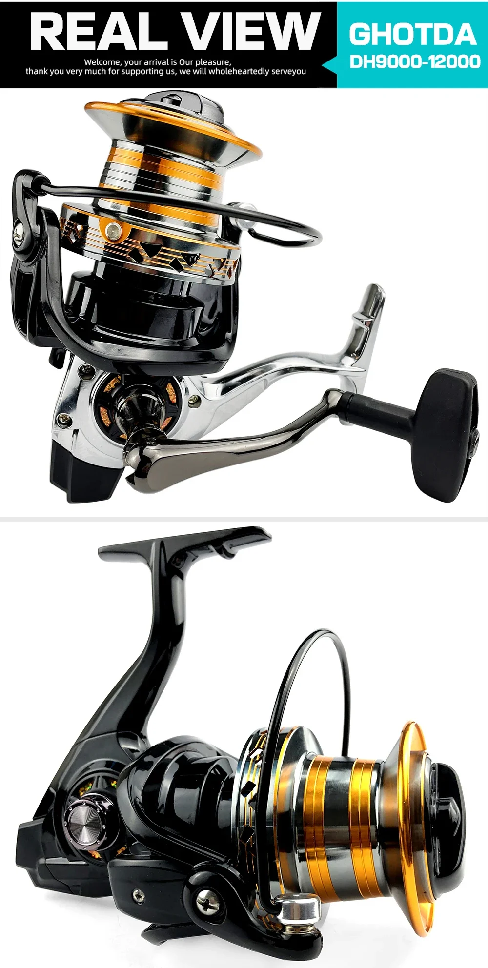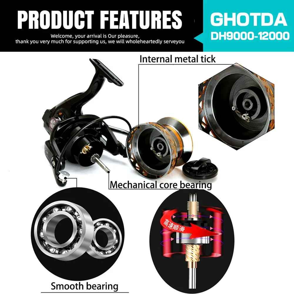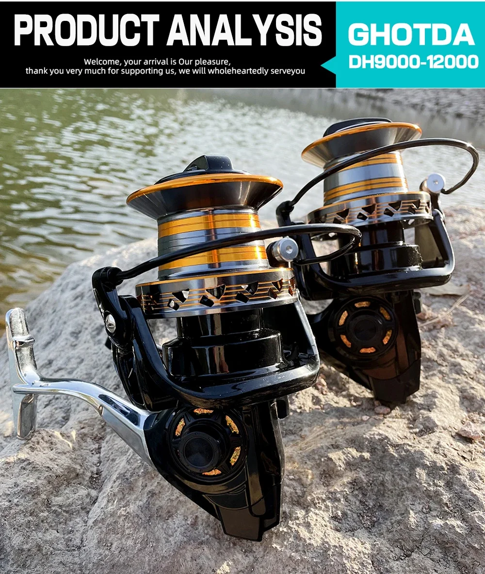 INFORMACIÓN BÁSICATipo de carrete: carrete de pesca de tiro largoRelación de engranajes: 4,0: 1Rodamiento de bolas: 13Serie: 9000/10000/12000Base del pie del carrete de pesca: nailon y metalCARACTERÍSTICAS1. Fuerza de arrastre superior, arrastre máximo30 kg.